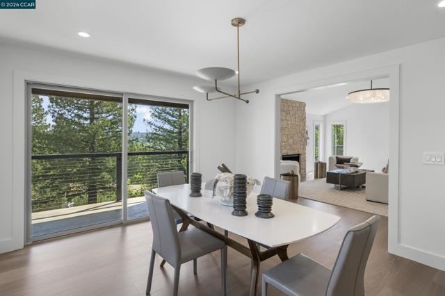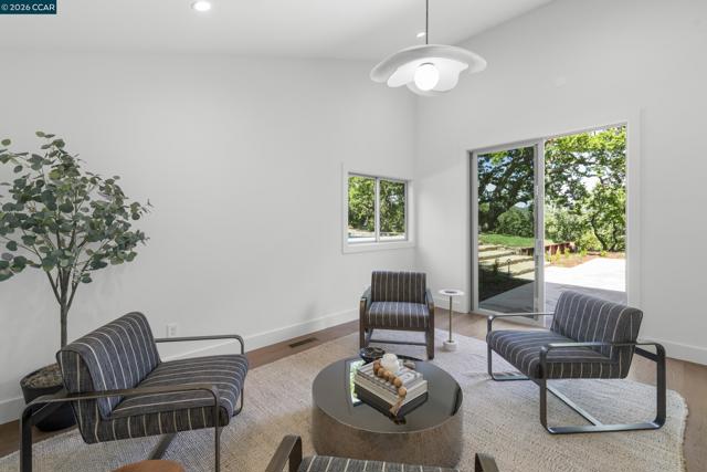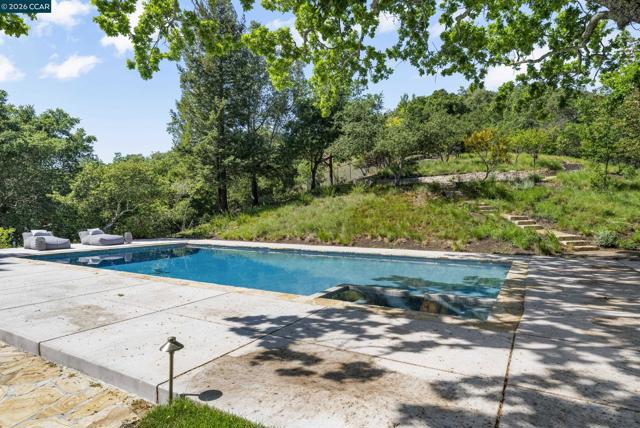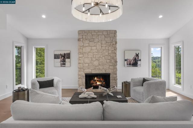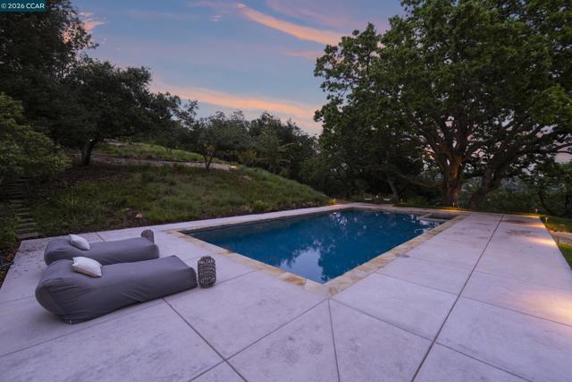 Tucked away on a private and secluded 1.91 acre lot in Lafayette’s sought after upper Happy Valley area near Olympic Oaks, 1059 Lizann Drive offers breathtaking views, exceptional privacy, and a rare sense of serenity while remaining just minutes from downtown Lafayette, BART, Highway 24, and Lafayette’s highly regarded schools. This beautifully reimagined 5 bedroom, 4.5 bathroom home spans approximately 3,900 square feet and has been extensively updated throughout with new composite exterior siding, new roof, new plumbing, new electrical, new windows, designer finishes, engineered hardwood floors, new baseboards, and recessed lighting. The phenomenal layout is ideal for everyday living and entertaining, highlighted by a massive living room with a stunning stone gas fireplace and abundant natural light from expansive windows and skylights. The chef’s kitchen features a breakfast bar, six burner gas range with griddle, double oven, walk in pantry, and a sink overlooking the backyard oasis. The private primary suite captures incredible views and a spa inspired bath with dual sinks, soaking tub, and walk in shower. The backyard is a true retreat with a newly upgraded pool, large grassy area, expansive patio, and sweeping hillside views. Perfect for relaxing or hosting gatherings.