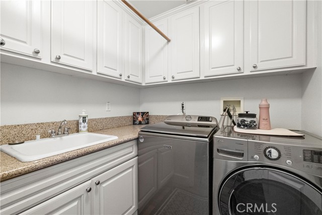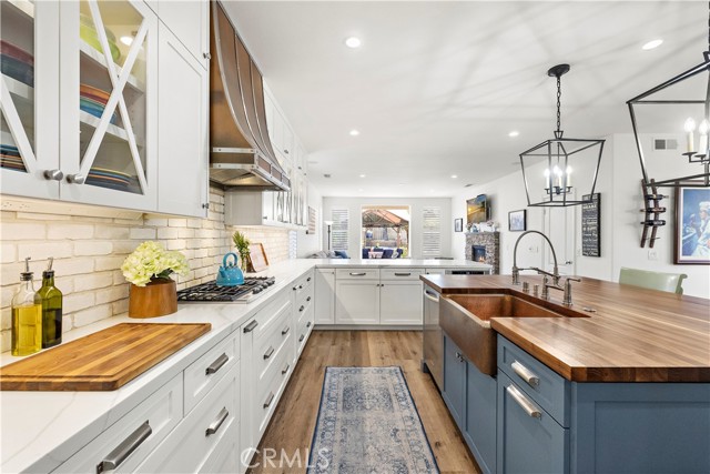 As seen in magazines across San Diego and Coronado for it's gorgeous kitchen remodel this property is a stunner. Nearly 3500 sq ft of living space, featuring 4 bedrooms, 4 bathrooms, with a main floor bed and bath suitable for guests or multi-generational living.. The chef's kitchen is the hub of the home custom designed by Coronado's designer "Alyce Lopez of The True House". Embracing that modern farmhouse style with quartz counters, cabinetry that goes to the ceiling with glass uppers, copper farmhouse sink, double ovens, 5 burner gas cook top with copper hood, tons of storage and center island with butcher block counter and seating to host large gatherings in this open concept space. Full eat in kitchen, family room with fireplace, open to the backyard with covered dining for those al fresco dinners and morning coffee. There is also a formal dining room with a butlers pantry between kitchen and dining room with wine fridge, a main floor laundry room and a formal living room across from the dining room. Upstairs features a large loft, 2 spacious guest bedrooms with a shared bath and the master bedroom. The master bedroom features vaulted ceilings, a private patio, plenty of room for seating, an oversized master bath with garden tub dual vanities, separate shower, and walk in closet designed by classy closets. Notable features include cathedral ceilings, paid solar, waterproof vinyl floors on main level, indoor and outdoor surround sound, a three-car garage with EV charging, low-maintenance outdoor spaces, an in-ground Jacuzzi with a new motor and heater, an outdoor storage shed, elevated planters, separate pet area with a kennel, a new lower level AC unit that runs off the solar, and a new hot water heater. The two car garage has a new door with new motor/opener, the third car garage is the owners craft room, could be converted back to a garage if needed. There is parking for several cars in the long private driveway. This corner lot home is located in a single loaded quiet cul-de-sac street and offers significant value with low Mello-Roos fees. Residents of Heritage Hills have access to community amenities such as a large pool, a children's pool, parks, hiking and biking trails, and overnight security. This location provides easy access to the 805 and 125 freeways and is within 15 minutes of major attractions, including Sesame Place, the U.S. Olympic Training Center, San Diego, Petco Park, the Zoo and the upcoming Chula Vista Marina development.