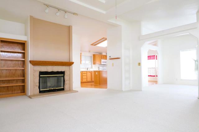 Discover this stunning home in the Casa De Amigos Community. This gorgeous residence spans approximately 1,790 sqft with 3 bedrooms and 2 bathrooms. The living room is carpeted and includes a cozy fireplace and a ceiling fan with lights. The dining area is also carpeted, creating a warm atmosphere. The kitchen is equipped with a built-in microwave, linoleum flooring, a refrigerator, a dishwasher, an upgraded stove, an oven, an island, a skylight, and ceiling lights. Master bedroom features a ceiling fan with lights and carpet, while the guest bedroom is also carpeted for comfort. Master bathroom offers a separate tub and shower, double sinks, a sliding door, cabinets, and linoleum flooring. Guest bathroom includes a skylight, cabinets, linoleum flooring, and a tub with a shower. The backyard contains 1 shed, and the utility room offers linoleum flooring, with a washer and dryer included. Additional features include double pane windows. Conveniently located near Freeway 101 and a shopping center, dont miss out. Stop by today!