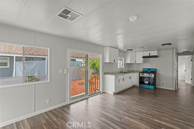 Remodeled 2-bedroom manufactured home featuring a kitchen with brand-new cabinets and a new stove. Living and dining areas include mini-split systems for efficient heating and cooling. Laminate flooring throughout the home 1.5 bathrooms. Attached carport for 2 vehicles. Beautiful fruit tree and attractive landscaping. The community offers a pool and library.