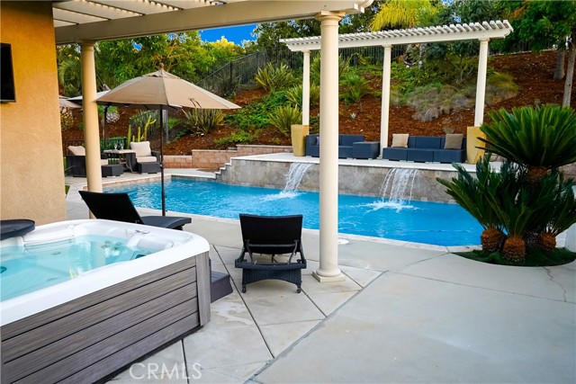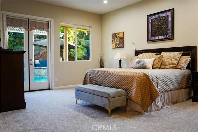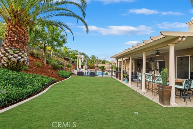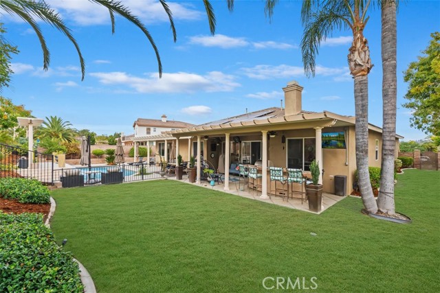 Lender 2-1 buy down considered with acceptable offer. Come Home to a Luxury Resort Lifestyle, everyday. Exclusive Gated Rancho Valencia Single-story Gem feature pool, lavish patios, and orange groves; this is so much more than just a prime location. Sellers' extensive upgrading to this 5 bedrooms/3 bath exclusive demands to be seen. Inside the grand entry is an inviting, thoughtful layout is designed to be flexible, comfortable and efficient to accommodate your every need. The open family room/kitchen features an oversized island, adjacent dining area, and custom built-ins around the fireplace. This beckoning space facilitates everything from quiet cozy evenings to game nights, movie time, or festive evenings for large gatherings. The bright, spacious primary bedroom boasts an ensuite bath with ample mirrors multiple vanities, dual walk-in closets, custom closet organizers. Imagine getting ready for your day with plenty of amenities plus no crowding or stress. In the evening, the soft glow of sunset streams through the windows and on the multi-leveled patios to create a serene atmosphere when it's time to unwind. Rest assured, meticulous maintenance ensures the home has been lightly used and the mechanical integrity is sound. Modern comforts, including two HVAC systems, cloud based surveillance cameras, whole house fan, and a 75 gallon water heater the list goes on. A fully owned solar system (59 panels) provides low to no cost power for your house and your garaged EV. Outside, the manicured landscape with blooming trees, plenty of grass, plus a bountiful mini fruit orchard and vineyard that reflect years of planning and investment by the current owners.RV/boat parking in the side yard accommodates recreational toys and features a 50 AMP plugin for your RV. Super clean garage has loads of cabinets. Two out-buildings add plenty of storage (one even has AC and electrical to it). This home pairs practicality with luxury living, the LOCATION is PRIME and the value is unbeatable.With right offer everything will stay, (except some personal items and external furniture) For the fortunate few, dreams can come true. Come envision your fabulous future-TODAY