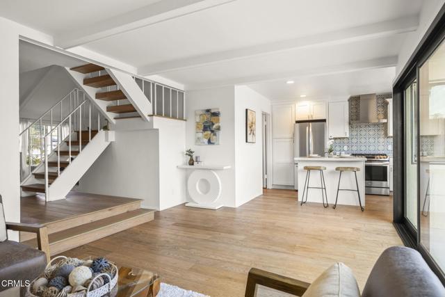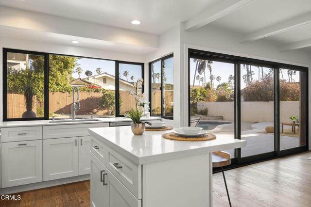 Discover the best kept secret in Ventura! Bright and beautiful, this 4bd, 3ba home is tucked away in a quiet Keys cul-de-sac, just steps from Big Beach Park. Soaring ceilings and sunlight drenched living spaces flow seamlessly to your fully remodeled gourmet kitchen complete w/ stainless steel appliances, island seating, and expansive glass doors that open to your private backyard paradise, which features a large sparkling in ground pool. Downstairs, you will find a versatile bedroom and full bath that offer the perfect guest suite or home office, a large living room complete w/ a statement fireplace & a separate dining area. Upstairs, the luxurious primary suite features a large vanity and ample closet space. Two more bedrooms connected by a Jack & Jill bath complete the upstairs. Embrace an active lifestyle, walking distance to beaches, kayaking, paddleboarding, paddle tennis, volleyball, and everything Ventura Harbor Village has to offer. Life's better by the beach! Your dream Keys lifestyle starts now!