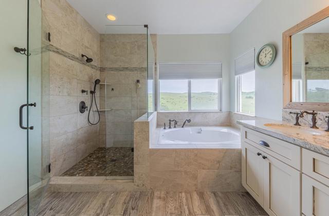 Behind your private gate discover this rare 5-bedroom single-story estate in San Juan Bautista offering nearly 2,900 SqFt, 4 bedrooms + office on 3.75 acres with a fully owned $44,000 solar system, massive 40x60 metal shop, and complete property remodel. Ideal for multi-use living, remote work, or hobby space with easy Highway 101 access. This beautifully upgraded home features new "Country Cedar" plank flooring, granite countertops in the kitchen and all bathrooms. The open layout includes vaulted ceilings, abundant natural light, and a seamless kitchen-family room combination perfect for everyday living and entertaining. Step outside to an expansive recently reset patio with pavers, ideal for relaxing or hosting gatherings while enjoying the surrounding hillside views. Fully gated and offers exceptional parking capacity including an oversized 3-car garage plus ample space for RVs, boats, or equipment. The expansive 40x60 metal shop adds incredible flexibility for business use, storage, or hobbies. Situated on 3.75 usable acres in a horse-friendly setting this property delivers space and functionality while remaining conveniently located near Highway 101 and just minutes from Gilroy to the north, Salinas to the south, Watsonville to the west, and Hollister to the east.