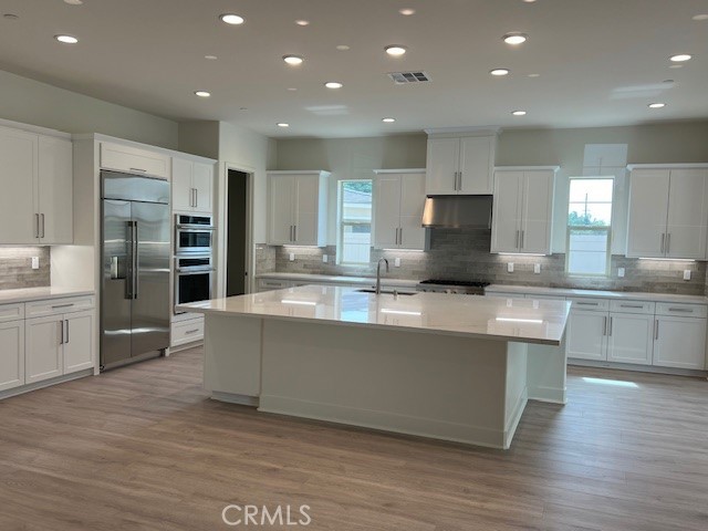 Discover this beautifully designed Multi-Gen home—perfect for extended living or flexible space needs! This must-see residence features an inviting private entry, a spacious great room, and a gourmet kitchen with white cabinetry, quartz countertops, built-in micro-oven and refrigerator, a walk-in pantry, and a large center island ideal for entertaining. Enjoy an open dining area and a luxurious primary suite complete with a generous walk-in closet and private bath. Additional highlights include a convenient laundry room, a covered patio for outdoor living, and a 3-car tandem garage. Ceiling fans are included in all bedrooms for year-round comfort.