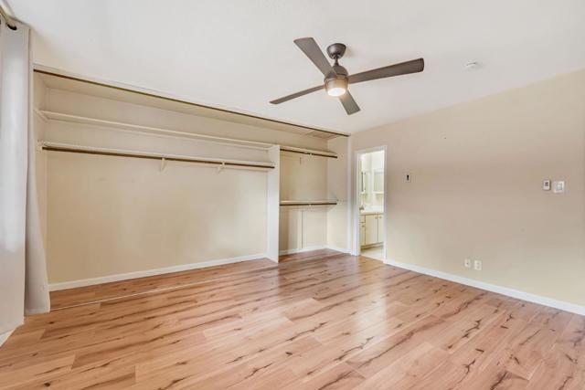 New Price! Enjoy efficiently designed condominium living at 121 Buckingham Drive #25. This rare 2-bedroom, 2-bath upper-floor features high ceilings and abundant natural light, creating a bright, open atmosphere. The private balcony overlooks rolling greenbelts, plush redwoods, and tranquil water features, giving the feeling of a private backyard retreat. The open floor plan flows seamlessly, with uniform laminate flooring, a spacious kitchen with stainless steel appliances, and a cozy living room with a functional space perfect for a home office. The primary bedroom offers dual closets, with additional storage throughout the unit. Community amenities include heated pool, a spa, sauna, fitness center, clubhouse, and guest suite. Conveniently located near laundry facilities and the pool, this home blends comfort with serenity. Prime location provides easy access to Apple Park, Santana Row, Westfield Valley Fair, and Hwy 280, making commuting and shopping effortless.