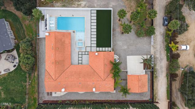 Exceptional gated Ojai compound with four independent structures, and a resort-style pool courtyard on 1.41 private acres. Designed as a true multi-structure estate, the property spans four separate buildings making it ideal for multi-generational living, creative use, or boutique retreat potential. The resort-style pool courtyard anchors the estate and delivers that private resort experience with an approximately 40-foot pool, dual Baja shelves, six waterfalls, a dramatic 20-foot fire wall, an inset spa, and a glow-in-the-dark pathway, all surrounded by new luxury turf and is visible from much of the main residence. The over 4,000-sq-ft main home features 6 bedrooms and 6 bathrooms with high ceilings, abundant natural light, and seamless indoor-outdoor flow, along with an attached mother-in-law suite offering its own private exterior entrance for added independence. A discreet concrete ramp serves the rear primary suite, providing elegant accessibility without compromising design. A separate 3-bedroom, 1-bath guest house includes its own gated street entrance, open kitchen, exterior laundry, fenced yard with turf, and a mini-split HVAC system for individualized year-round comfort. Two additional structures were used for family members with each having private entrances, fenced yards, and mini-split systems, making them ideal for home offices, studios, family or visiting friends. Mature fruit trees are scattered throughout the grounds, while a large open central area creates natural separation between structures and offers future possibilities such as gardens, recreation space, additional parking, or expansion. This rare Ojai retreat blends privacy, versatility, and long-term potential, offering a compound-style layout designed to support the way you live today while leaving room to grow tomorrow.