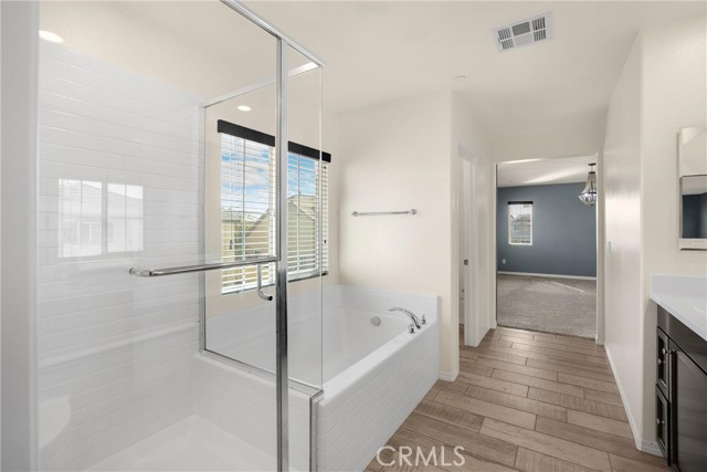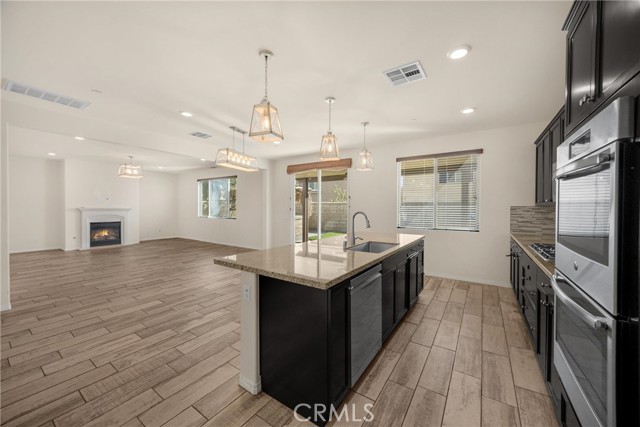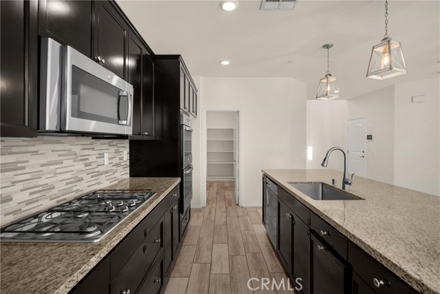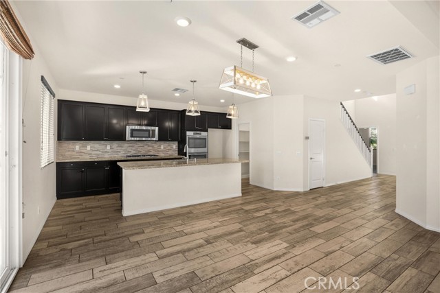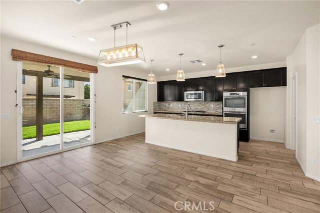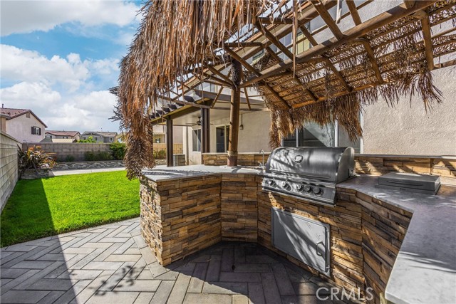 Welcome to this well-maintained two-story Spanish-style home located in the desirable Riverbend community of Jurupa Valley. Built in 2016, this 2,400+ SF home offers 4 beds, 3 baths, plus a large loft. The open and bright layout welcomes you with soaring entry ceilings, an abundance of storage space, with modern chic fixtures and hardwood flooring throughout. The large living area features an abundance of natural light, cozy fireplace, and direct sliding door access to the backyard. The galley-style kitchen opens to the dining and living areas and features granite countertops with a seated island, stainless steel appliances, and a large walk-in pantry. The upper level features the primary en-suite, a large loft, two guest bedrooms, dual sink bathroom, and a large laundry room with built-in shelves and cabinets. The primary bedroom features plenty of natural light with modern sliding barn doors that lead to your dual-sink vanity, soaking tub with separate shower, and large walk-in closet. Additional highlights include tankless water heater and water softener, security system, and a financed solar system. The backyard features a large covered patio with ceiling fan, manicured yard and play area, raised garden bed, and a tiki style gazebo with a fully equipped outdoor kitchen featuring quartz counters, a built in BBQ, sink, range, and mini fridge! Enjoy the many outdoor amenities offered within the community, including a sprawling park, barbecue area, children's playground, basketball court, equestrian trail, and a 9-hole Frisbee golf course. Ideally located nearby an array of shopping centers, supermarkets, and restaurants — including Costco, 99 Ranch Market, and Eastvale Gateway Shopping Mall. Convenient access to major highways 15, 60, 10, and 91 and located in the Corona-Norco Unified School District near highly regarded schools such as River Heights Intermediate School and Eleanor Roosevelt High School.