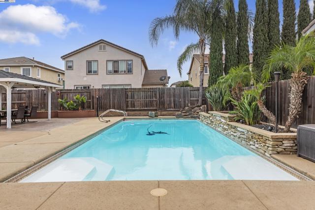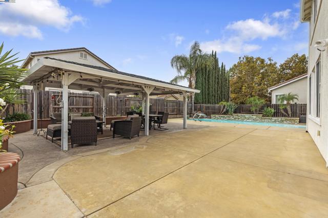 Welcome to this beautifully updated Patterson home offering the perfect blend of comfort and style. Featuring 6 spacious bedrooms and 3 full baths, this open-concept floor plan is ideal for both entertaining and everyday living. The interior shines with fresh paint, engineered wood flooring, and a cozy fireplace. The kitchen flows seamlessly into the living area and is completed by a full-home water softening system and reverse osmosis system, adding convenience and peace of mind. Step outside to a large backyard designed for relaxation and fun — complete with a fiberglass pool with fountains, a gazebo with electricity, and lush landscaping in both the front and back. Additionally, this home was meticulously cared for, and it shows. Conveniently located just minutes from local shopping and dining, this move-in ready gem is the perfect place to call home.
