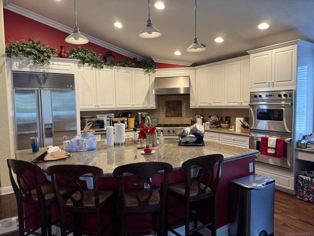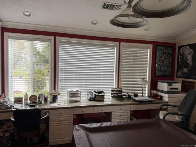 One of a kind single story house in Bernardo Heights. Structure was completely remodeled in 2006 and went from 1800 SF to 2300 SF. I widened the side of the house by 5'6" in order to have a grand island kitchen and extended the back of the house by 10'. I added a new 400 SF patio with a massive gas fireplace. I replaced all of the windows with Milgard vinyl dual pane windows. And I added a 3rd bathroom off the family room. I added a new kitchen with all new cabinetry, Subzero refrigerator, Viking 6 burner stove, range hood, double convection ovens, a Bosch dishwasher and granite countertops. Three built-in desk/work stations on the side of the family room with filing cabinets and drawers at each work station with granite counter tops. Agents and clients please do your due diligence when investigating the property. Four of the windows and the sliding glass door track will be replaced by Milgard Windows under warranty on March 12th. The community association of Bernardo Heights includes clubhouse, gym, activity rooms, library, two pools upper and lower, 8 lighted tennis courts, and track. Membership also allows you to have use of Lucido Park. The community center also has activities, potlucks and games at the center. It's a great deal.