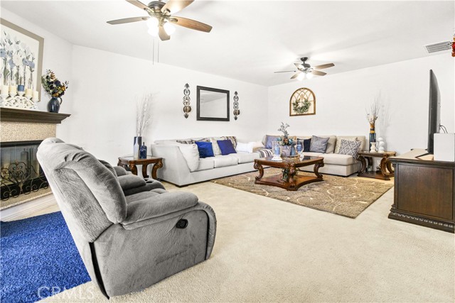 12447 Cricket Ln | Victorville, CA 92392 4 Bedrooms | 3 Bathrooms | 2,966 Sq Ft | 3-Car Garage Beautifully finished throughout, this spacious two-story home offers 4 bedrooms, 3 full baths, and nearly 3,000 square feet of thoughtfully designed living space. Interior features include upgraded carpet and tile flooring, formal living and dining rooms, and an open-concept layout ideal for both entertaining and everyday living. The gourmet kitchen showcases granite countertops, high-quality cabinetry, stainless steel appliances, counter cooktop, double ovens, and a generous walk-in pantry. The adjacent family room features a corner fireplace and sliding door access to the rear yard, creating seamless indoor-outdoor flow. A full bathroom and an inside laundry room with soak sink and cabinetry complete the downstairs level. Upstairs offers a versatile loft area, three oversized secondary bedrooms with ceiling fans and mirrored closet doors, and a spacious primary suite. The primary retreat includes its own fireplace, dual vanities, separate garden tub and stall shower, and a large walk-in closet with natural light window. Additional highlights include a fully finished 3-car garage designed for extended storage or larger vehicles and low-maintenance, water-tolerant landscaping in the front yard. A well-appointed home offering comfort, space, and quality upgrades throughout.