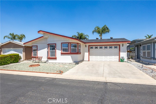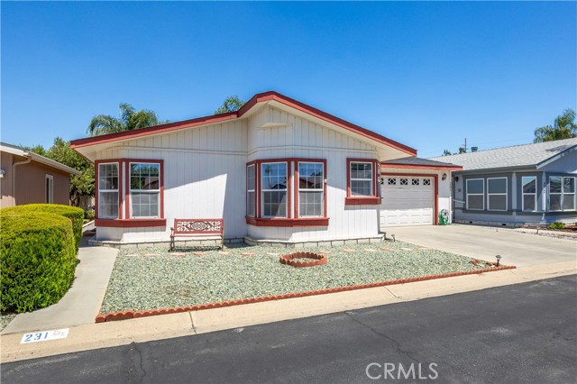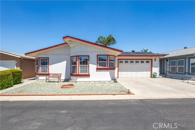 1250 N Kirby St #231, Hemet, CA – Spacious & Upgraded Home with Rare 2-Car Garage in the Foothills of Hemet 55+ Community. Welcome to this beautifully maintained 2-bedroom, 2-bathroom home located in the highly desirable Foothills of Hemet, a gated 55+ community known for its peaceful setting and resort-style amenities. This spacious home stands out with tall ceilings, an open floorplan, and upgrades throughout. The large kitchen is a standout feature, offering a center island, abundant cabinetry, and a seamless flow into the formal dining room—perfect for entertaining. The oversized living area provides ample room to relax and enjoy the natural light that fills the space. The primary bedroom suite includes a bonus area ideal for a home office, craft space, or reading nook, along with a private bath and generous closet. The secondary bedroom and full guest bath are equally well-sized, and there's a convenient indoor laundry room for added functionality. A rare find in this community: this home boasts a full 2-car garage, available only in select homes in the back section of the park. This is an incredible bonus, especially on a land-leased lot, where garages of this size are uncommon. Enjoy the outdoors from the covered front porch or unwind in the low-maintenance yard. A private storage shed is also included. All this with a low monthly space rent of just $875! Residents of the Foothills of Hemet enjoy access to a pool, spa, clubhouse, fitness center, billiards, and a vibrant calendar of social activities. Conveniently located near shopping, restaurants, medical centers, and more. Don’t miss the opportunity to own this rare gem with exceptional features in one of Hemet’s most popular senior communities!