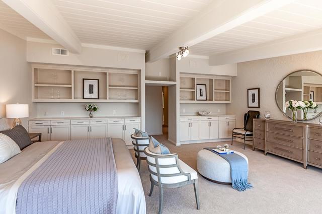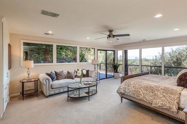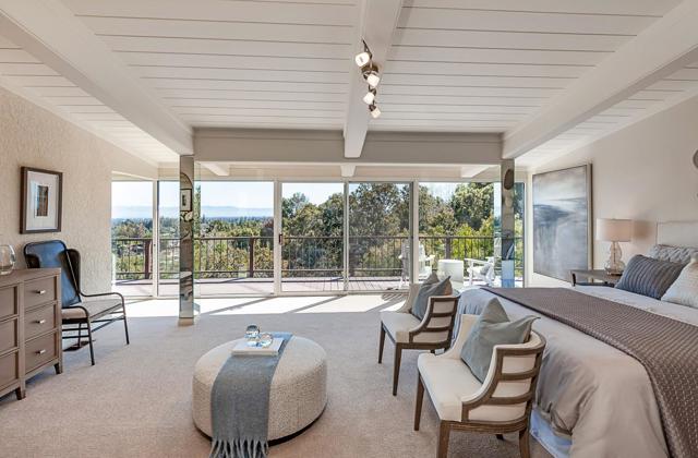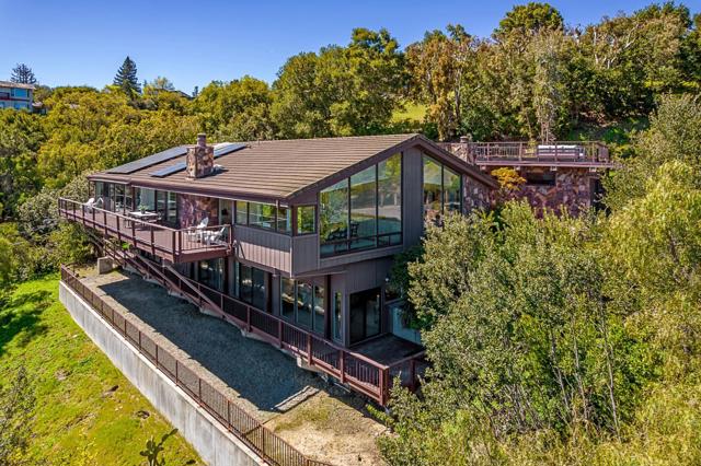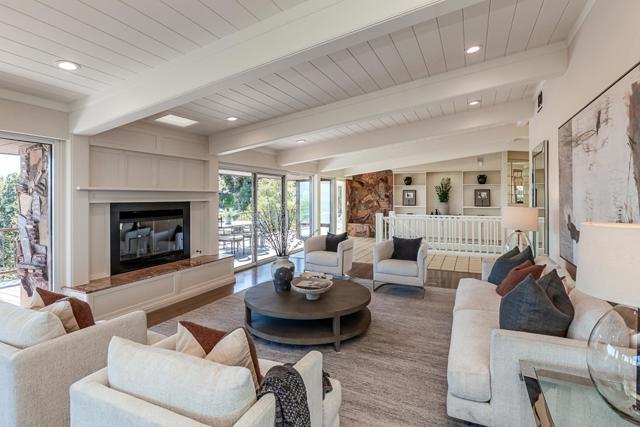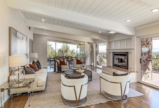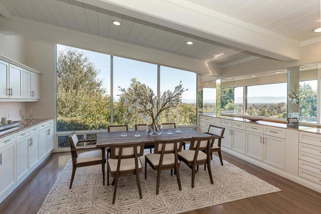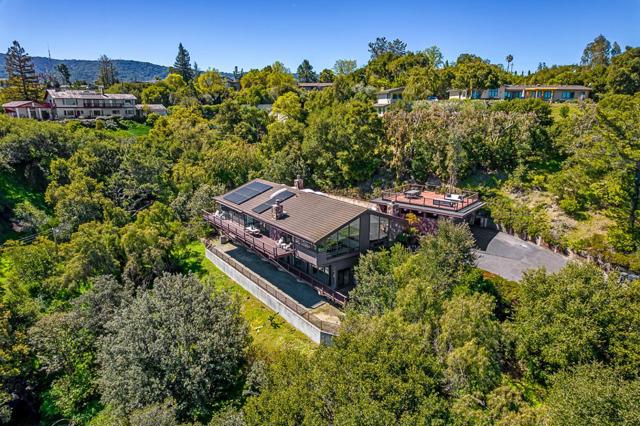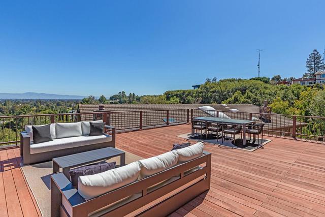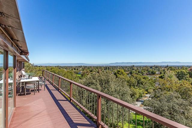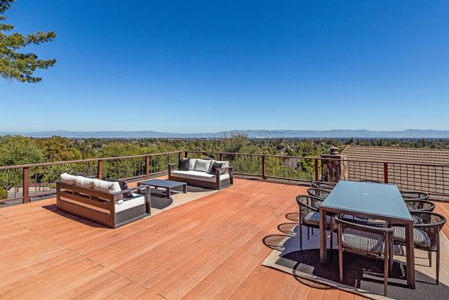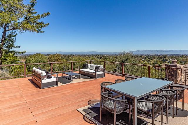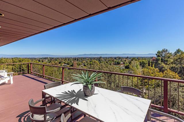 Set on a tranquil 1.5-acre parcel in one of the most sought-after pockets of Los Altos Hills, this beautiful mid-century home offers the extremely rare blend of panoramic Bay views, exceptional privacy, close proximity to the Village, and acclaimed Palo Alto schools. The interior blends timeless architectural character with modern updates, and includes generous entertaining spaces, seamless room-to-room connection, and expansive windows that each present a different vantage point of the breathtaking views. The main-level primary suite offers a serene retreat with extensive closet space, an updated spa-inspired bath, coffee bar, and private outdoor access. There are three additional bedrooms, one with an en suite bathroom, one with an adjoining office, and all with access to the outdoors. A state-of-the-art media/recreation room with projector, retractable cinema screen, full bar, and wine cellar provides the ultimate in-home experience. Exterior amenities include upper and lower view decks, a very large rooftop entertainment space with panoramic views, a spacious front patio, and a level lawn perfect for recreation and play. Peaceful Silicon Valley living, ideal for those who value space, style, views, and access to world-class education!