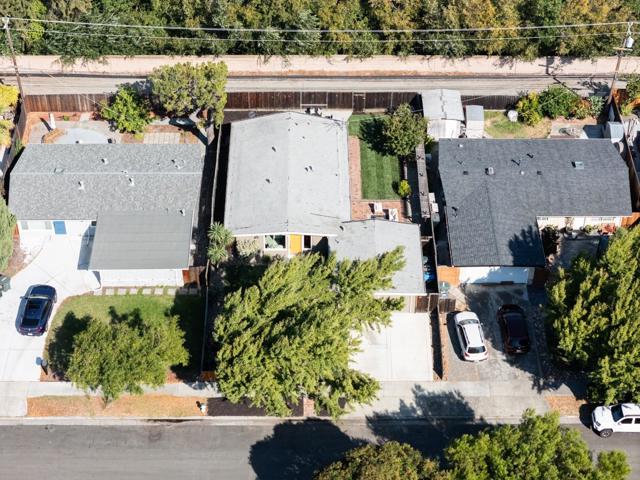 In the heart of Silicon Valley, minutes from Levi's Stadium and Great America, this mid-century modern gem pairs iconic design with fresh updates. A bold orange front door leads to vaulted, beamed ceilings, expansive picture windows, and sleek hardwood floors. The bright white kitchen with island seating flows into open living and dining spaces; this main hub connects effortlessly to a patio and newly landscaped yard. Exterior decorative lighting adds a festive element for easy and enjoyable indoor-outdoor living. This 3 bedroom and 2 bath home includes a remodeled primary suite, plus mirrored closets and ample storage; comfort meets style at every turn. Outside, enjoy newly landscaped front and back yards with attractive fencing. Added perks include an individual room heating/AC system on remote control, tankless water heater, gourmet hot water faucet over range, and a detached 2-car garage with epoxy flooring. Newly painted inside this home is ready to move right in. Unbeatable access to top tech hubs and major commuter routes, this location delivers the ultimate Silicon Valley lifestyle.