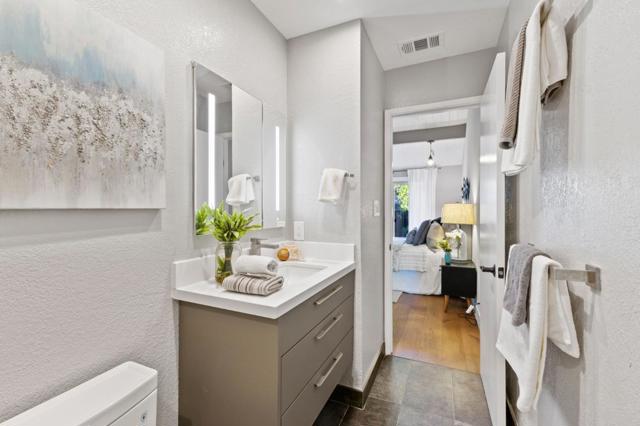 Beautifully remodeled single-story end-unit townhouse in Sunnyvales desirable Sunnytrees community. This modern home offers privacy, comfort, and luxury upgrades throughout. Fully renovated in 2018, it features engineered wood flooring, a stylish kitchen with quartz countertops, Miele appliances, and a Zephyr range hood. The bathrooms include high-end fixtures and Robern medicine cabinets with touch controls. Recent upgrades include new electrical wiring, furnace, AC, water heater, and a MERV 16 air filtration system with HRV for fresh air year-round. Enjoy two private yards, an attached garage pre-wired for dual EV chargers, and community amenities including a pool and clubhouse. Ideally located minutes from Caltrain, major tech campuses, top schools, parks, dining, and shopping, this home offers exceptional Silicon Valley living at 128 Brahms Way.