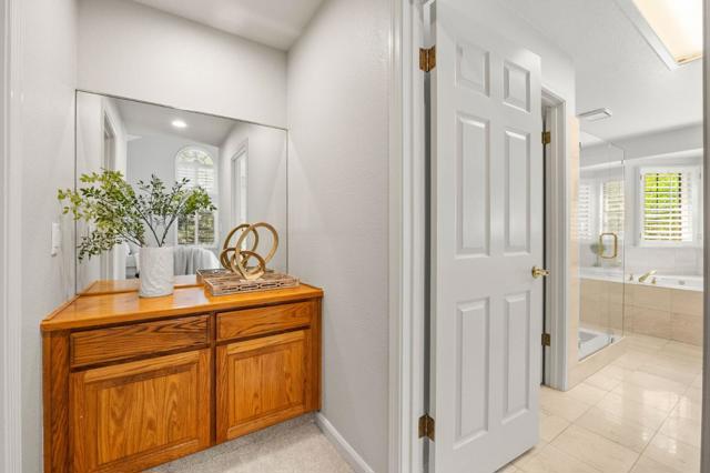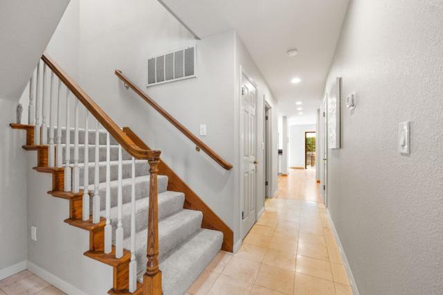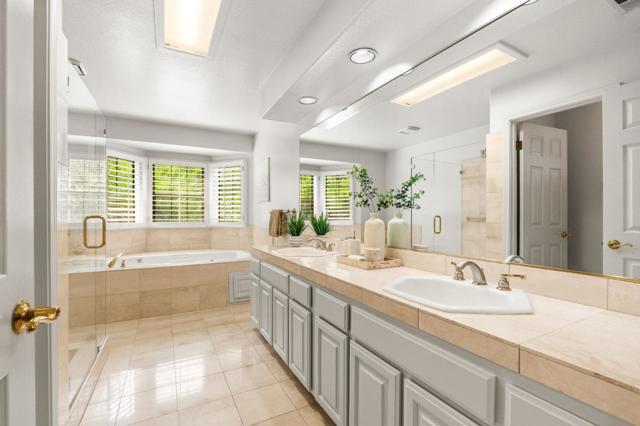 Rare end-unit townhouse in the peaceful Villas of Almaden, a gated community surrounded by majestic trees and natural beauty. This meticulously maintained 3-bed, 3-bath home offers 2,454 sq ft of light-filled living space with no rear neighbors and serene greenbelt , also a super quiet cul-de-sac location is another big plus. The Villa Rosa model is a sought-after floor plan featuring a ground-floor bedroom & full bathperfect for guests or multi-gen living. The dramatic two-story living room showcases abundant natural light and a marble fireplace. Adjacent dining/family room opens to a spacious deck, ideal for relaxing or entertaining. The updated kitchen includes a cozy breakfast nook, with counter seating and private patio just off the dinning area. Upstairs, the expansive primary suite offers vaulted ceilings, corner fireplace, private deck, and a spa-like en-suite bath with soaking tub, separate shower, double vanity, and walk-in closet. A junior suite with full bath completes the upper level. Also includes indoor laundry with washer/dryer and sink, a oversized 2-car garage w tons of storage. H.O.A. covers home / earthquake insurance. Enjoy community amenities: multiple pools, spa, tennis courts, & clubhouse. Come see this beautiful home and experience the Villas of Almaden