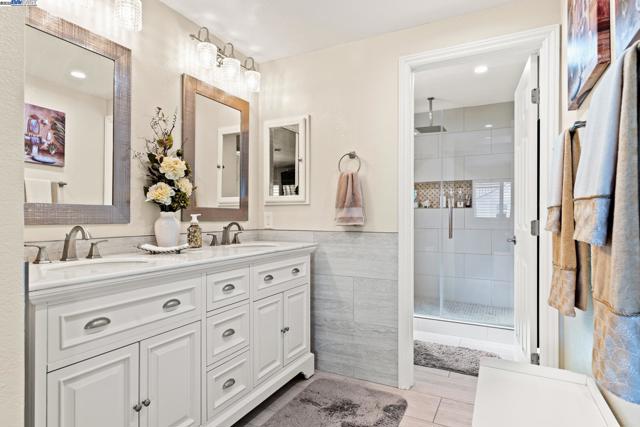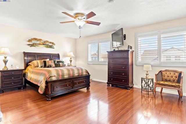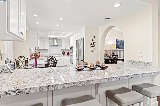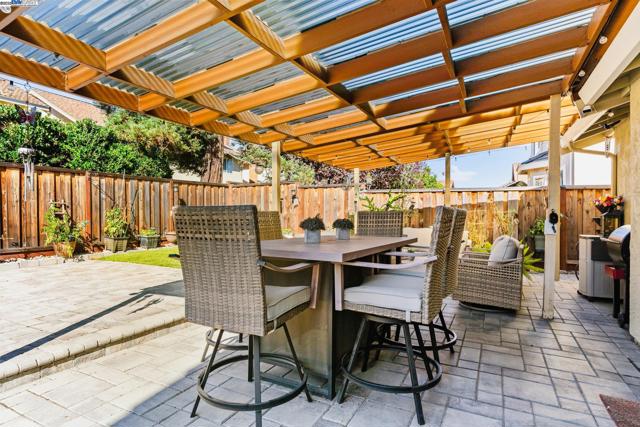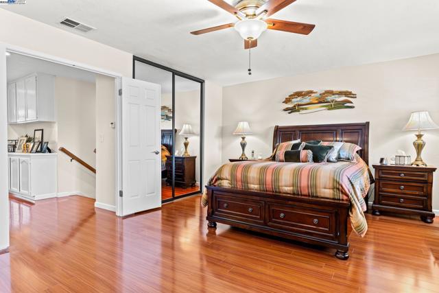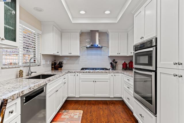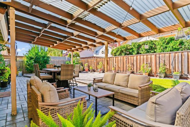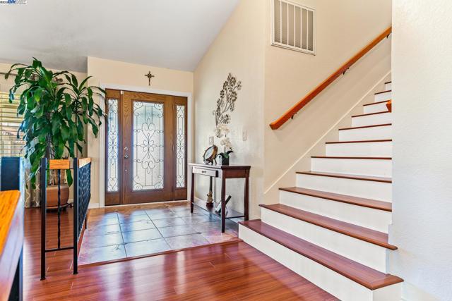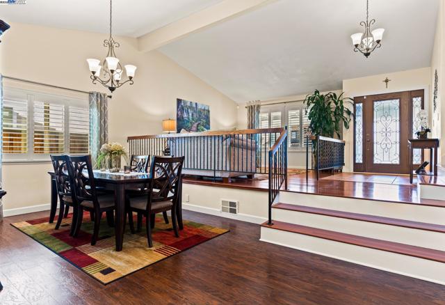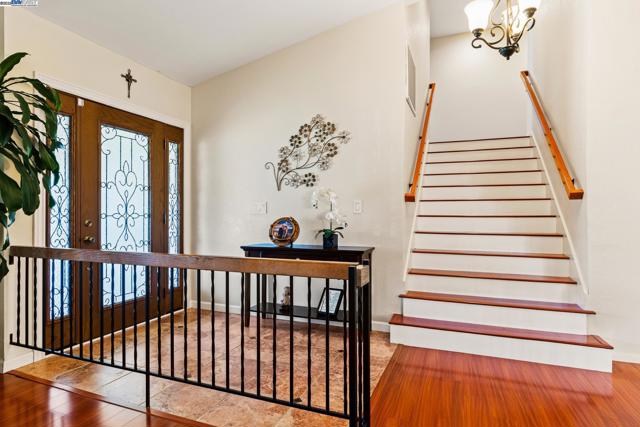 Wonderfully upgraded home in Hayward's College Park and shows very well! Shapell-built home with formal living and formal dining areas, **bedroom and full bathroom downstairs** for guests or in-laws, family room with cozy fireplace, remodeled kitchen with nook dining, quartz counter tops, stainless steel appliances, and extra long service bar. Oversized primary bedroom suite with multiple closets, primary bathroom remodeled with dual vanities and custom shower. Some of the amenities include dual zone central heat and air conditioning, new dual pane windows throughout, plantation shutters, recessed lighting throughout and raised ceilings! Unbelievable backyard with covered patio and pavers. Popular and convenient location, very close to major retail, many restaurants, Chabot College, and commuter friendly to the San Mateo Bridge!