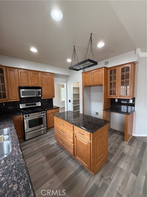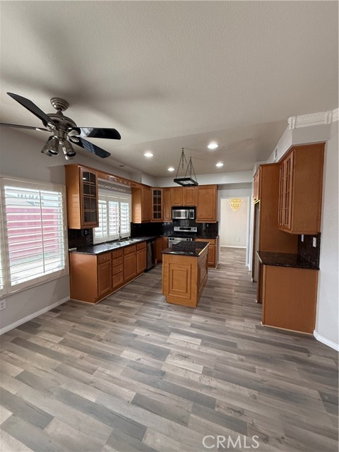 Four bedroom and three bathroom home in the city of Corona. Step inside your home and immediately notice the high ceiling in the family and dining room. Large open space and flooring throughout the first floor. The kitchen has plenty of cabinet storage. There is one bedroom and one full bathroom downstairs. Go up the stairs where the next 3 bedrooms and 2 bathrooms are located which also includes where the master bedroom is. The home situated on the corner of the street so no shared walls. Minutes away from restaurants, retail shopping, the 15 and 91 freeways.
