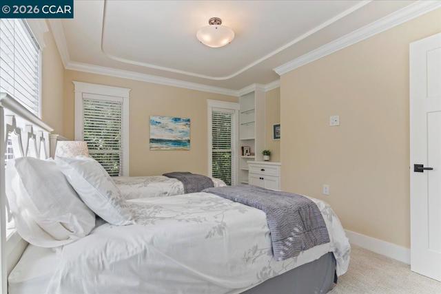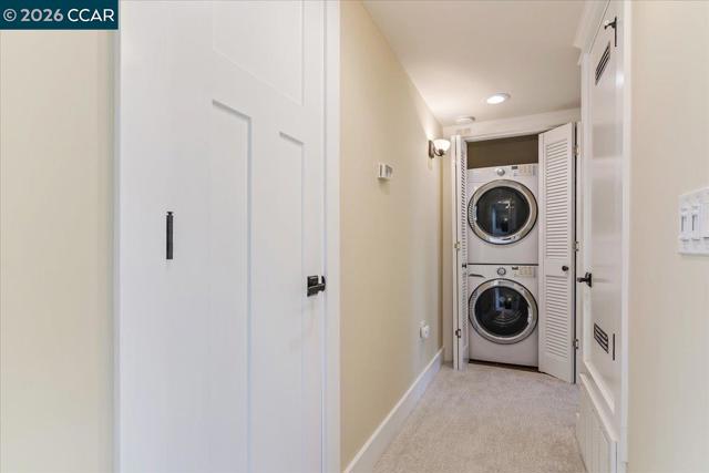 Beautifully reimagined Monterey model 2BR/2BA end unit filled with natural light and thoughtful upgrades throughout. Seamless reconfiguration enhances flow and functionality. Remodeled kitchen with custom cabinetry and stainless steel appliances. Updated bathrooms with modern finishes, including a bench in the primary shower. Crown molding and custom Smith & Noble window coverings throughout. Dining area features a modern coffered ceiling and custom cabinet wall with display lighting. Primary suite offers a tray ceiling and walk-in closet. Wired for surround sound with built-in speakers. Enjoy a peaceful, tree-surrounded back deck. A must-see home.