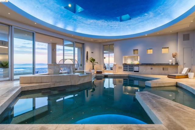 Just beyond the private gates sits this iconic, single story, custom-designed property atop the Ridgemont hills on over 3 acres of land. The non-traditional but practical architectural design of this property make it versatile for large events or private intimate gatherings. Create masterful meals in the remodeled kitchen while entertaining guests around the expansive island. With 180 degree views spanning 5 bridges, the sights from this property are unparalleled. Secured with a specially designed pier system, this home is as solid as they come. The massive, circular carport and 6 car garage allow you to accommodate your guests while hosting epic parties and show off your toys. With over 9,000 sq ft of living space, the open floor plan has a seamless indoor/outdoor flow. As the sun sets into the Bay, take the festivities outdoors to one of several lounge areas and enjoy beverages while creating tasty treats at the outdoor kitchen and pizza oven. With a one-of-a-kind indoor swimming pool, spa, video game room, dog kennel and basketball court there are plenty of activities for all. Enjoy even more spectacular views of the Bay from the thoughtfully curated home office designed to inspire creative minds. This is an incredible opportunity.