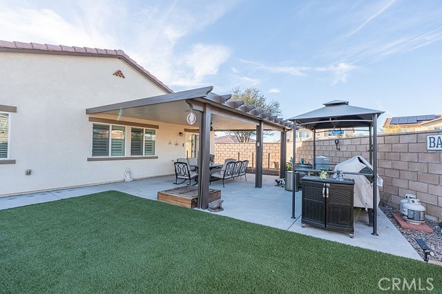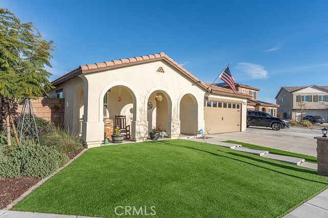 Welcome to this spacious 4-Bedroom, 3-Bath, 2 car garage, built in 2022 home featuring great curbside appeal! Living space has an open concept great room with a dining combination. Kitchen includes breakfast island, stainless appliances, whirlpool stove, microwave, and dishwasher. The master bedroom offers a beautiful on suite with a walk-in shower, dual-sink vanity, private commode and large walk-in closet with barn door access. The backyard comes with a 24x16 patio cover with outdoor overhead variable speed fan and four dimmable pot lights; BBQ gazebo is perfect for your grill. Enjoy a 5-person overground hot tub, gazing at mounted solar tiki torches, three (3) 3'D'X5'WX6'H stores sheds. Low maintenance landscape and front porch sitting area with easy care of the artificial turf and decorative rock. To complete this oasis of a home more added features are, outdoor lights, smart home features for front door, thermostat tankless water heater, and a water softener. Paid-off solar panels