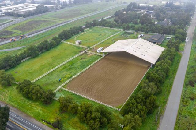 Premier San Martin location for this spectacular horse property on nearly 7 acre's featuring high end equestrian facilities! Custom 8 stall barn offers separate tack, office & storage rooms and wash pad. 260' by 125' riding arena (covered portion 12 years new) 60' round pen, fenced and cross fenced, parameter trail, several small & large turnouts, solar hot wire and so much more. The home is a perfect retreat for those seeking a blend of luxury and functionality. Spacious interiors with four bedrooms - massive primary suite, three full bathrooms, open & bright versatile floor plan, hardwood floors, vaulted ceilings, double paned windows plus separate office & laundry rooms. Other features include an inviting entrance with semi-circular driveway, electric gates and beautiful stonework. 3 car garage, enclosed pool, newer deck and wonderful grounds offering potential for more!