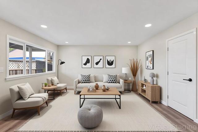 Welcome to this charming 4-bedroom, 2-bathroom home located near the foothills of the Pajaro Valley close to County and City parks. This home features remodeled Kitchen and bathrooms. It also has new appliances in the kitchen and new flooring throughout. With 1,232 sq ft of living space, this residence offers a comfortable and functional layout. The kitchen is designed with a family-friendly approach, featuring a kitchen/family room combo, perfect for gatherings and everyday living. NOTE, photos with furniture have been digitally staged. The property is situated on a generously sized lot, with wide access on the side of the house providing extensive access to ample outdoor space for various activities. The flooring throughout the home is designed for durability and ease of maintenance, complementing the overall aesthetic of the interior. For your convenience, the home also includes a two-car garage, and a back yard shed offering plenty of storage and parking space. This home is a great choice for families seeking a single story home in a accessible location. Don't miss out on this opportunity to make this your new home in Watsonville.