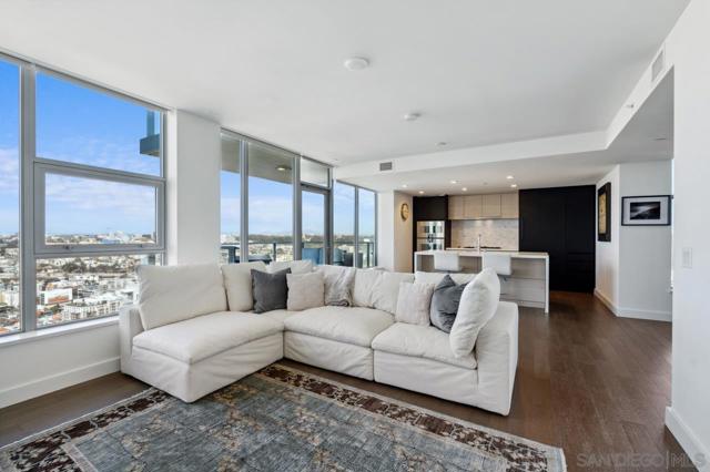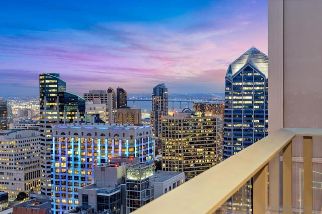 The 35th floor of the iconic Savina building is a perspective like no other. This exquisite condo offers a rare opportunity to experience luxury living at its finest. One of only eight penthouses in the renowned 36-floor building. Floor-to-ceiling windows frame sweeping views of the bay, ocean, city skyline, inland mountains, and beyond. The sleek kitchen is appointed with exceptional Gaggenau appliances and is enveloped by mesmerizing views. The thoughtfully designed layout features two private balconies, an open-concept living and dining space, and a spacious primary suite with a luxurious bathroom and a custom walk-in closet. Additional highlights include a dedicated laundry room, automated blinds, contemporary finishes, three assigned parking spaces, and a large storage unit. The residence has been meticulously cared for and only occasionally occupied. This is high-rise living elevated to extraordinary heights. Built in 2019 and one of downtown San Diego's premier addresses, Savina redefines modern sophistication with its exceptional amenities and unbeatable location. Residents enjoy a stunning pool and spa terrace, state-of-the-art fitness center, yoga studio, pet retreat, dog washing station, bike repair stands, and inviting social lounges. Just outside, vibrant Little Italy and the waterfront offer a dynamic mix of world-class dining, boutique shopping, outdoor activities, scenic sights, and cultural attractions. Whether you're seeking a serene retreat or active urban lifestyle, this penthouse is your gateway to the very best of San Diego. Two photos virtually staged Living in Downtown San Diego places you at the center of a thriving urban hub, where world-class experiences await at every turn. The historic charm of Little Italy, just outside Savina's beautiful lobby, offers a vibrant blend of celebrated restaurants, quaint cafés, art galleries, and the popular weekly Mercato Farmers' Market. The nearby waterfront invites leisurely strolls along the Embarcadero, with access to Seaport Village, the USS Midway Museum, and exciting events at the Rady Shell. With a dynamic nightlife, cultural festivals, and countless entertainment options, this location seamlessly blends energy and elegance, providing a lifestyle that is as active as it is refined.