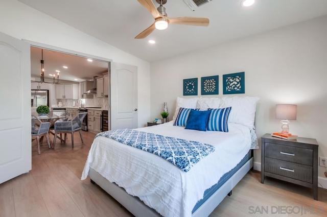 This is the one you have been waiting for in Madrid Manor where you OWN the LAND! 1 year old house with 3 bedrooms, 2 bath, open concept living, custom flooring thru out including Luxury Vinyl Plank, tiled bathrooms and indoor laundry room. (no carpet) kitchen with marble backsplash, Touch faucet, reverse osmosis system, lots of storage with cabinets upgraded with pull outs, walk in pantry, upgraded stainless steel appliances and new wine fridge. Wine and coffee area, center island with custom porcelain countertop, hard surface countertops thru out. Fireplace with custom surround and plug for tv above, spacious master suite with walk in closet with closet organizers and cabinetry, tiled shower, double vanities and custom make up area. Upgraded lighting in baths, dining and exterior. Front spare bedrooms with hall office area and French doors into spare. Custom ceiling fans in each room and many additional ceiling lights thru out home. Exterior painted in light grey and white, large private outdoor space with stamped concrete that looks like pavers, vinyl fenced large yard, new shed. Ring camera, Low maintenance landscape on automated drip system and to top it off a great Avacado tree! Home is 15 months New! Home located in the esteemed 55+ Madrid Manor community in San Marcos. YOU OWN THE LAND!! Madrid Manor has many amenities, including a pool, spa, clubhouse, tennis/pickleball courts, billiard room, card/game room, and library, in addition to numerous social events. The manufactured home has a 433 A permanent foundation.
