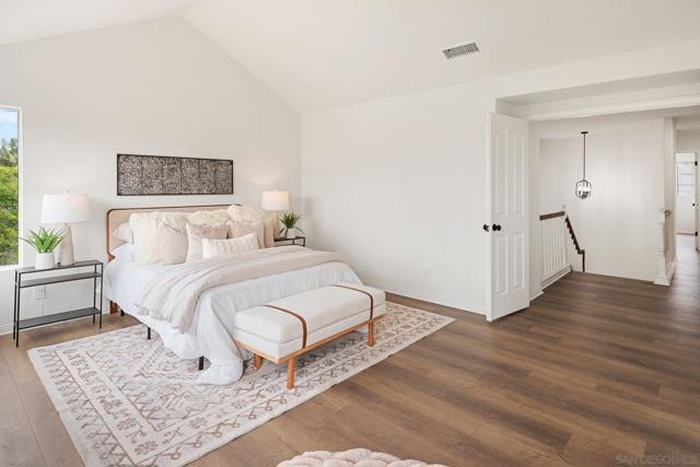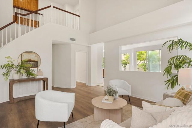 Beautifully situated in the highly desirable Carmel Mountain Ranch, this home occupies a prime corner lot at the entrance of a double cul-de-sac, offering exceptional privacy with no through traffic. Abundant natural light fills every room, creating a bright and inviting atmosphere throughout. There is no adjacent new construction or high-density housing, preserving both comfort and privacy. The functional floor plan features three bedrooms and two bathrooms upstairs, along with a main-level office and half bathroom, easily adaptable as a fourth bedroom—ideal for guests or multigenerational living. Recent upgrades include a brand-new 5-ton HVAC system, along with all new appliances, flooring, and fresh interior paint, providing move-in-ready convenience. Located within the award-winning Poway Unified School District, with Shoal Creek Elementary, Bernardo Heights Middle School, and Rancho Bernardo High School nearby. Enjoy close proximity to shopping, dining, and everyday conveniences, with easy access to Highways 56 and 15—perfect for commuting and connectivity.