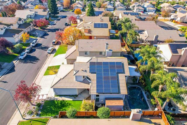 Spacious, and truly move-in ready, this beautifully updated 4-bedroom, 3-bath residence, features a solar system and private backyard swimming pool—perfect for comfortable living and entertaining. Recent updates, tile flooring on both the main and upper levels, quartz kitchen countertops, and newer windows replaced approximately three years ago. High ceilings, and abundant natural light. The well-designed floor plan offers a full bedroom and bathroom on the main level, two generous living spaces, washer and dryer in the unit, and an oversized 3-car garage. The primary suite is a private retreat with a newly updated en-suite bathroom featuring an upgraded stand shower and dual vanities, complemented by two additional updated full bathrooms. Excellent location within walking distance to schools and parks, and conveniently close to shopping, dining, and everyday amenities.