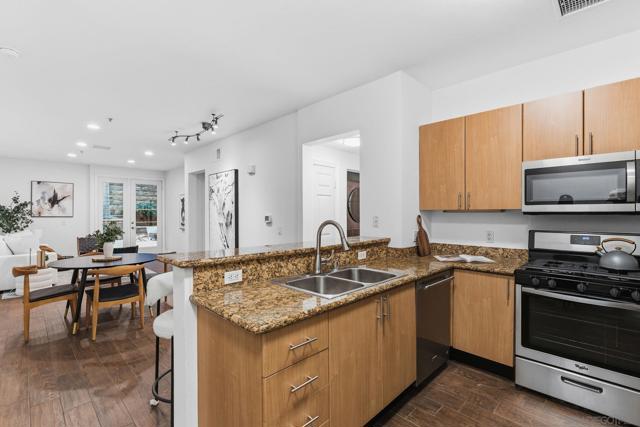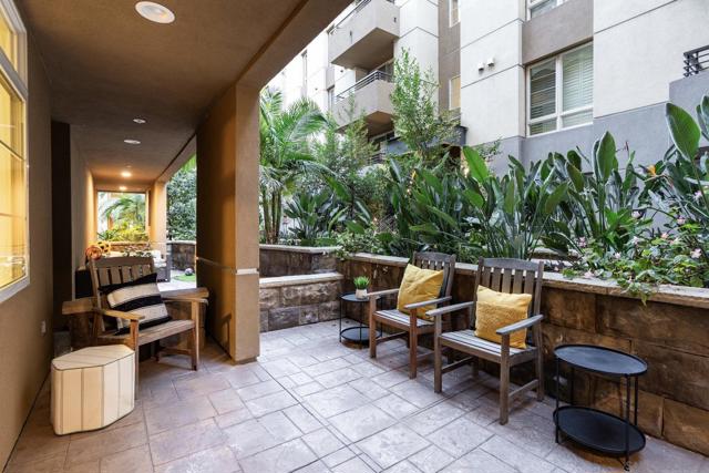 Welcome to this highly sought-after residence offering an impressive 1,100 sq ft of private outdoor space. Designed for seamless indoor–outdoor living, the home opens effortlessly to an expansive yard, perfect for entertaining or unwinding in a tranquil setting. The front entry welcomes you through a private courtyard framed by lush greenery and tranquil water features, creating a serene arrival experience. Elevators located just steps away provide direct access to your parking spaces in the upper garage, blending everyday convenience with refined urban living. Enjoy the rare comfort and privacy of a single-family-home feel in the heart of the city. With a Walk Score of over 90, Union Square is located across the street from San Diego City College with convenient access to major freeways: 163, 5, and 94. Adding to the neighborhood’s safety and peace of mind, the San Diego Police Department (SDPD) headquarters is also located directly across the street. Union Two blocks away a 4.1 acre East Village Green park is under construction and a wonderful addition to the neighborhood! The development will include a community center, children’s park, off-leash dog areas, cafés, plazas, multiple lawn areas, a performance pavilion and underground parking. Union Square Condominiums deliver exceptional value with below-average HOA fees. Amenities include a fitness center, pool, sauna, clubhouse with a pool table, and courtyards with BBQs. The HOA also covers key utilities such as water and trash, adding even more value for homeowners. An on-site property manager ensures smooth day-to-day operations, while multiple communal EV charging stations make powering your electric vehicle easy.
