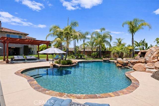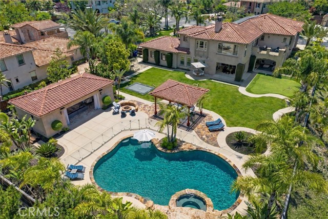 Welcome to your private tropical oasis in the prestigious Sanctuary at Stonebridge Estates. This stunning estate sits on an expansive, beautifully landscaped lot and is an entertainer’s dream. The resort-style backyard features a sparkling pool and spa, fully equipped outdoor cabana, manicured lawns, putting green, raised garden planters, fire pit, glass pool fencing, and owned solar. Inside, enjoy a chef’s kitchen that opens to spacious living areas, a first-floor guest suite, and an upstairs primary retreat with mountain views, dual walk-in closets, spa-like bath, and private sitting area. Over $250K in recent upgrades include soundproofing between floors, pocket sliding doors in the dining room, crown molding, casita remodel, full interior paint, and more. A true blend of luxury, comfort, and indoor-outdoor living.