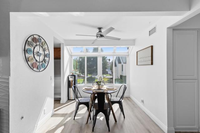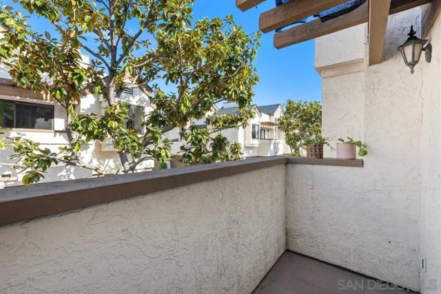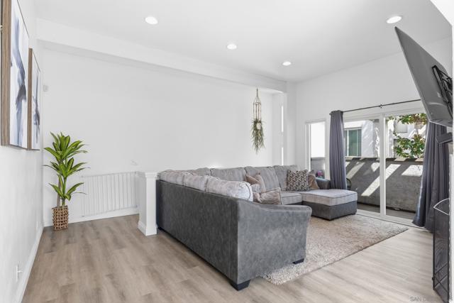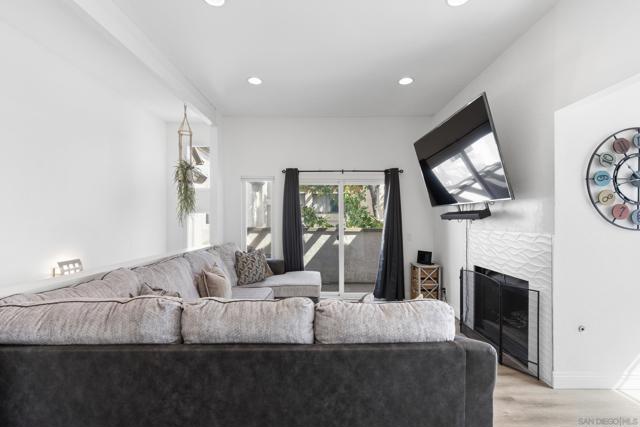 This stunning 2-bedroom, 2-bathroom corner unit in the highly sought-after Beacon community is a rare opportunity you won’t want to miss. With soaring vaulted ceilings throughout, this home offers an open, bright, and airy feel that is rarely found in similar units. The beautifully updated interior features luxury vinyl plank flooring, stainless steel appliances, recessed lighting, sleek modern finishes, and a cozy fireplace that creates the perfect focal point in the living room. The dining area is filled with natural light from large east-facing windows, making it the ideal place to start your morning. The expansive primary suite showcases dramatic vaulted ceilings, a spacious closet, and a luxury-style ensuite bathroom designed for comfort and relaxation. The second bedroom also features vaulted ceilings, adding to the home’s unique architectural charm. Step outside to your private balcony off the living room, perfect for summer BBQs, morning coffee, or relaxing evenings. Enjoy year-round comfort with central AC and heating. Additional conveniences include an attached garage with in-unit laundry, an assigned parking space located right next to the front door, and guest parking throughout the complex. The Beacon community offers resort-style amenities including a gated pool, spa/Jacuzzi, and beautifully maintained grassy common areas. Low HOA covers nearly everything except SDG&E, making this an incredible value. Move-in ready and truly a must-see!