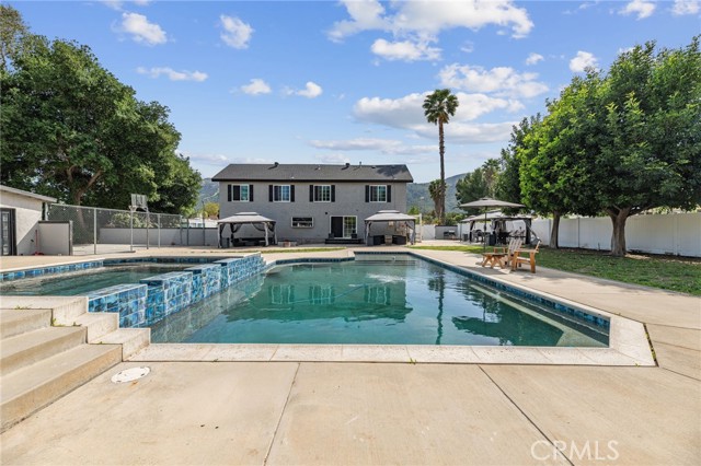 Stunning 4-Bed Estate on Over Half an Acre – $250K in Upgrades, Pool, Spa & Casita! Experience modern elegance in this beautifully renovated two-story 4-bed, 3-bath estate offering 3,175 sq. ft. of living space nestled on an impressive lot spanning over half an acre. Nearly every inch has been updated, featuring new wide-plank flooring, fresh interior and exterior paint, quartz kitchen counters, a custom coffee bar, repainted staircase, and new cabinets upstairs. The property features an expansive front yard and an extended, fully fenced driveway that provides exceptional privacy and abundant parking. The primary suite offers dual walk-in closets, a fireplace, and a spa-inspired bath with soaking tub and oversized shower. The detached guest studio (casita) with a full bath has been completely upgraded with a new mini-split HVAC, tankless water heater, and electrical panel, perfect for guests or multi-gen living. Enjoy outdoor resort-style living with a newly re-plastered and repainted saltwater pool and spa, two cabanas, sport court and beautiful new vinyl fencing surrounding the entire property. Additional highlights include new toilets, a newer main water heater, a whole-home water softener system, upgraded garage with new plaster, paint, and cabinetry, RV parking, detached storage, and paid solar. No HOA, low taxes, and a prime location near the lake, schools, and shopping make this a rare find in luxury living!