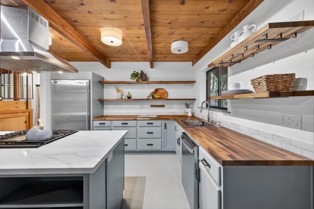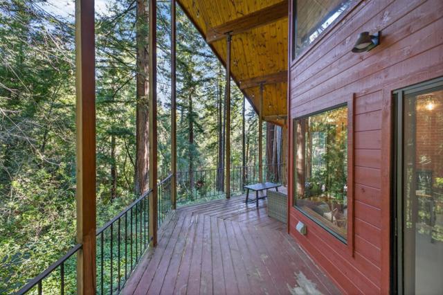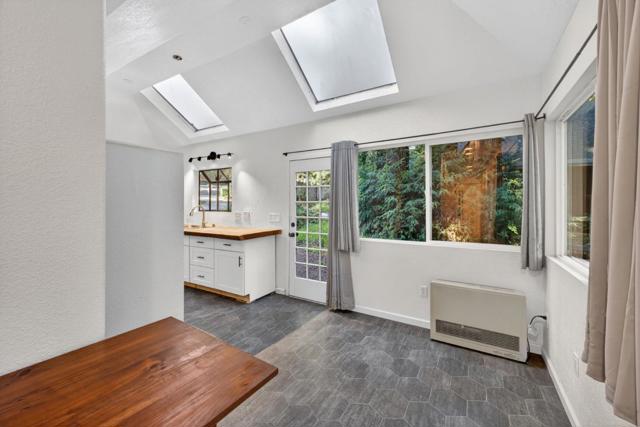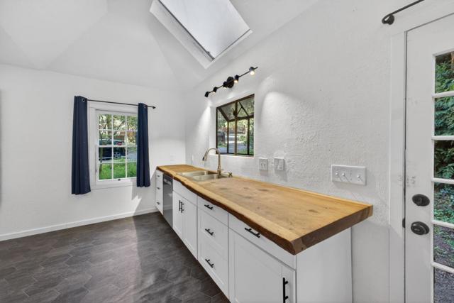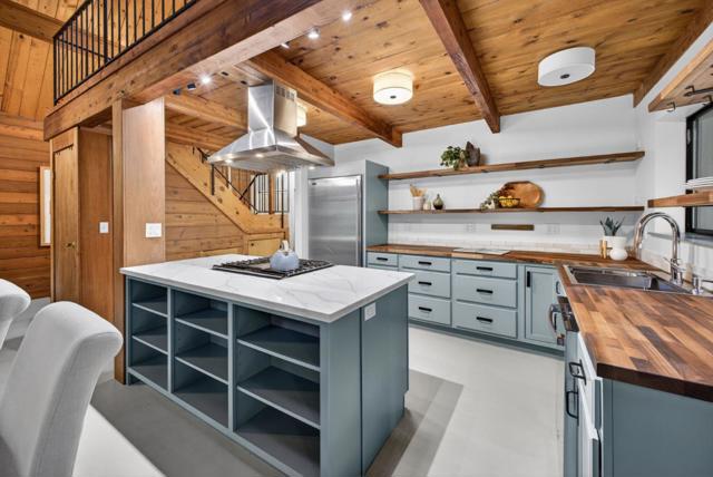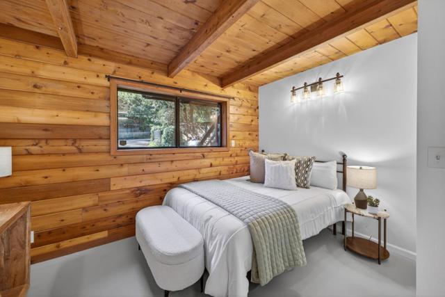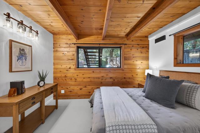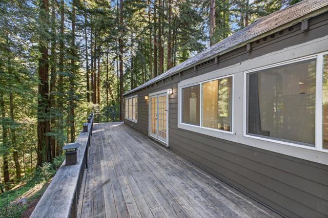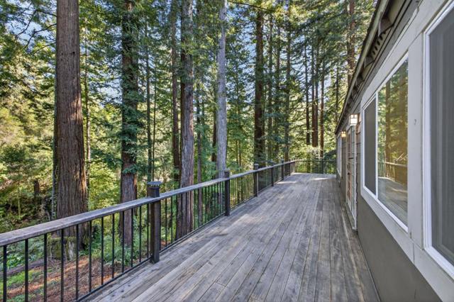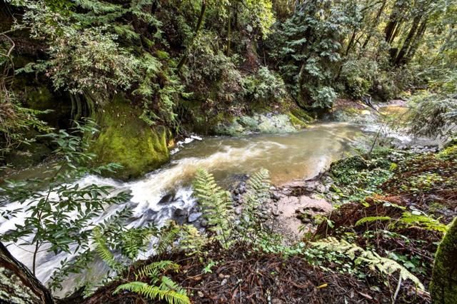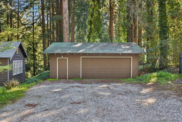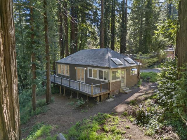 This rare property offers two homes on nearly an acre of lush forested land with private creek frontage and river access. This peaceful mountain retreat that feels secluded yet remains close to town. Both homes include indoor laundry hook ups and decks overlooking the surrounding forest. The main A-frame home is approximately 1,775 sq. ft. with three bedrooms and two bathrooms. Large windows and soaring ceilings fill the open living area with natural light. The remodeled kitchen features quartz and butcher block countertops, stainless steel appliances, custom cabinetry, Sub-Zero refrigerator, and pantry. Bathrooms are tastefully updated, and the sellers have also invested in meaningful functional improvements including plumbing, electrical, and additional infrastructure upgrades, ensuring the home is enhanced both cosmetically and structurally. The second home offers approximately 1,185 sq. ft. with a spacious bedroom, bathroom, and flexible living area, and thoughtfully designed kitchen with garden window. An oversized driveway, a spacious two-car garage with work bench and room for a workshop, convenient access to Highway 9, close proximity to Big Basin, and a short drive to downtown complete this exceptional property.