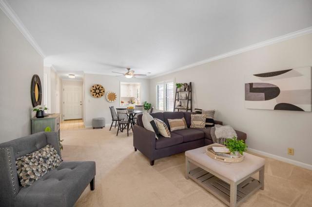 Welcome to this inviting 2-bedroom, 1 1/2-bathroom home located in the vibrant city of Gilroy. This charming property offers a bright atmosphere with an open floor plan, maximizing the feeling of spaciousness. Step inside to discover a well-equipped, efficient kitchen featuring an abundance of cabinets and counter space. Don't miss the garden window over the sink. Enjoy cozy evenings by the fireplace in the living room, which also accommodates a dining area for seamless entertaining and a charming balcony for outdoor dining. Newer central AC ensures a comfortable climate year-round, while forced air heating keeps you warm during the cooler months. The convenience of an inside laundry adds to the functional layout of this home. Residents have access to a community pool, perfect for leisurely afternoons. This property is located in an ideal location with shopping, Starbucks, banks and gym within walking distance. You're minutes from the freeway, and minutes from the many local parks and hiking trails. This home is ideal for people who enjoy cycling and the outdoors. Completing this offering is a 1-car garage with shelving, providing secure parking and additional storage options, plus one outdoor assigned space. Don't miss the opportunity to make this delightful home your own.