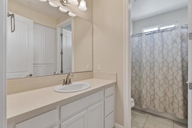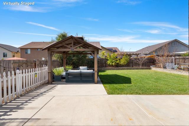 Welcome to this spacious 2,206 sq ft home on a over 6,000 lot in Santana Ranch in Hollister. The Legacy built home has 4 bedrooms and 3 and a half bathrooms, small loft, and a 3 car garage. The kitchen features an island with breakfast bar, gas cooktop, granite countertops, an electric oven, an exhaust fan, and a large walk-in pantry. The dining area has a courtyard off the side yard great for morning break. The primary suite is on the ground floor with western views, a huge walk-in closet, the bathroom is equipped with double sinks, an oversized tub, and a stall shower. Extra half bathroom downstairs for guest use. High ceilings enhance the sense of space and openness in the entryway with luxury vinyl flooring throughout, tiled bathrooms, and carpet bedrooms. Three bedrooms are located upstairs along with a utility room for laundry convenience. The backyard is fully landscaped with western afternoon light a gazebo and storage shed. Additional features include a spacious three-car garage, central heating and cooling, double pane windows, fire suppression system, tankless water heaters, and a breakfast bar in the dining area. The home has a solar power purchase agreement to be assumed by a buyer. No HOA. Window coverings and fully landscaped yard make this a great purchase.