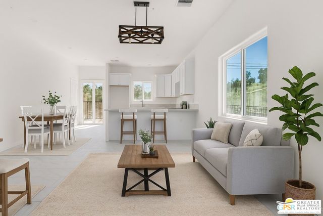 New Construction with No Hoa and Solar! This single-story residence features an open-concept layout with stylish upgrades that feature tile flooring that flows seamlessly throughout the living spaces. Clean lines and modern finishes create a sleek, inviting atmosphere. The thoughtfully designed kitchen with stainless steel appliances , waterfall granite counter top opens to the living and dining areas, making it ideal for entertaining or relaxing at home. Private guest quarters, offering flexibility for visiting family or even a home office. With its combination of contemporary elegance, practical design, and the ease of single-level living, this home is move-in ready and perfectly situated to enjoy everything Desert Hot Springs has to offer. Enjoy your mountain views while entertaining in your fenced back yard. Equipped with Central AC / Heat and Solar.