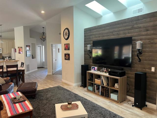 A Fabulous single-story home located in the highly desirable Subdivision Rancho Del Oro Village II community. This 3-bedroom, 2-bath residence features vaulted ceilings, new skylights, and a bright, open floor plan filled with natural light. The home offers central air conditioning for year-round comfort, a roof replaced within the past several years, and a fully owned solar system providing energy efficiency and reduced utility costs. When people that come to the house say their favorite part is the ship lap wall and sconces by the TV. A nice Fireplace in the living room. The remodeled kitchen includes granite countertops, upgraded cabinetry, soft-close drawers, pull-out shelving, a corner carousel, recessed lighting, pendant lighting over the bar area, under-cabinet lighting, and a bay window. Conveniently located near shopping, dining, and everyday amenities, and approximately 10–15 minutes from the beach. Neighborhood Kid park located directly across the street—ideal for outdoor enjoyment for all kids.