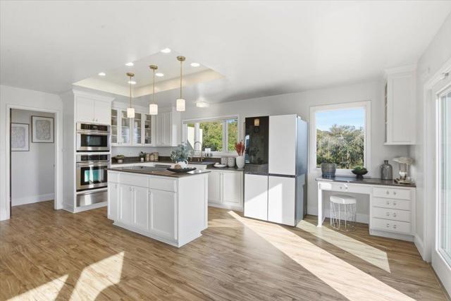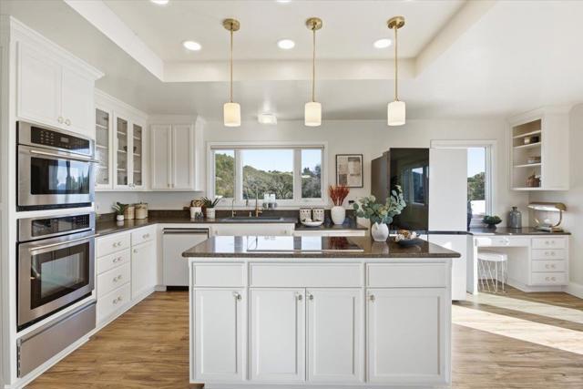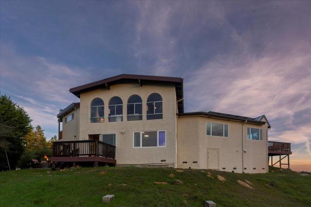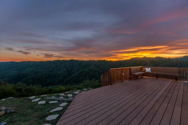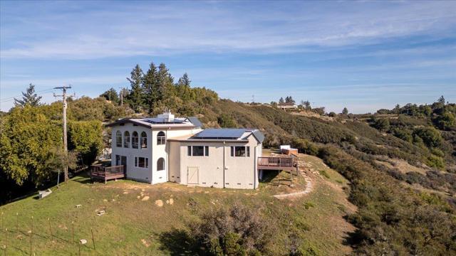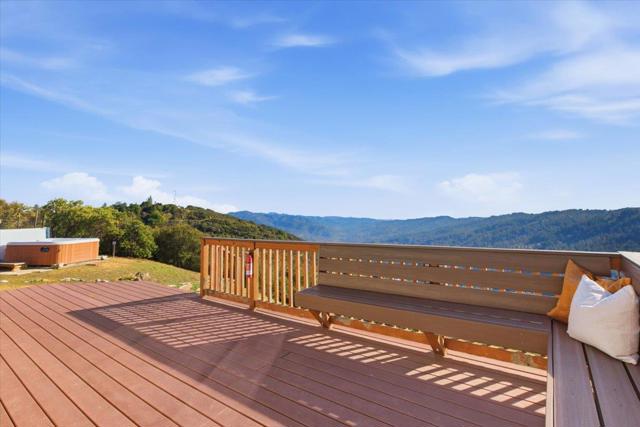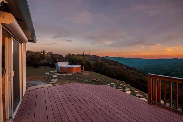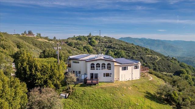 Luxury High-Tech Solar Home | Off-Grid Backup, NEM2, Gigabit Fiber. Ideally situated near downtown Saratoga's restaurants, shopping, coffee, wine tasting, & more. Near top-ranked Saratoga schools! Experience an exceptional blend of stunning views & prime location in this Saratoga residence. On appx 2.3 acres, this 4 bedroom home offers ~2,688 sq ft of thoughtfully designed living space with breathtaking panoramic views stretching from Monterey Bay to the San Francisco Bay. The gourmet kitchen features a center island, shaker cabinetry, granite counters, & modern stainless appliances, seamlessly connected to the dining area & overlooking a massive deck & spectacular vistas -ideal for everyday living & entertaining. The expansive living room showcases vaulted ceilings, a fireplace, and dramatic picture windows that fill the home with natural light. The spacious primary retreat includes a walk-out balcony, en-suite bathroom with walk-in closet, creating a peaceful sanctuary with unparalleled outlooks. Enjoy movie nights in the separate family room complete with a projector screen! Smart, energy-efficient features include owned solar w/ 2 Tesla batteries, backup generator, 2 EV charging stations, newer roof, whole-home water filtration & ozone system. Relax in the bubbling hot tub.