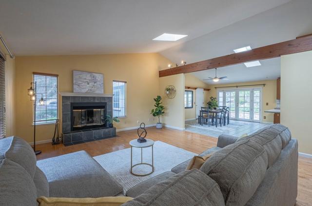 New Price! Welcome to Berta Meadows, a private gated community. This single level four bedroom home with a three car garage sits on an expansive 1.15 acre lot with a strong connection to the outdoors. Recently, the entire septic system has been rebuilt giving new owners peace of mind knowing this major system has been taken care of for years to come. Vaulted ceilings and skylights create an open, airy feel, with tile flooring in the dining area and hardwood floors in the living room. The eat in kitchen features stainless appliances, an island with sink, and French doors that open to a private backyard with a covered pergola & terraced garden space, ideal for outdoor dining. Four well sized bedrooms include mirrored closet doors and an updated hallway bath. The primary bedroom is generous, with windows that look out over the property's natural landscape. One of the guest bedrooms is ideally suited for a home office or flexible workspace. Throughout the home, views capture the natural landscape of a mix of mature native trees, and thoughtfully placed walkways leading to a sunny front patio beneath majestic oaks. The three car garage includes a utility and laundry room with a dedicated work area. Ample parking and room to spread out complete this special property.