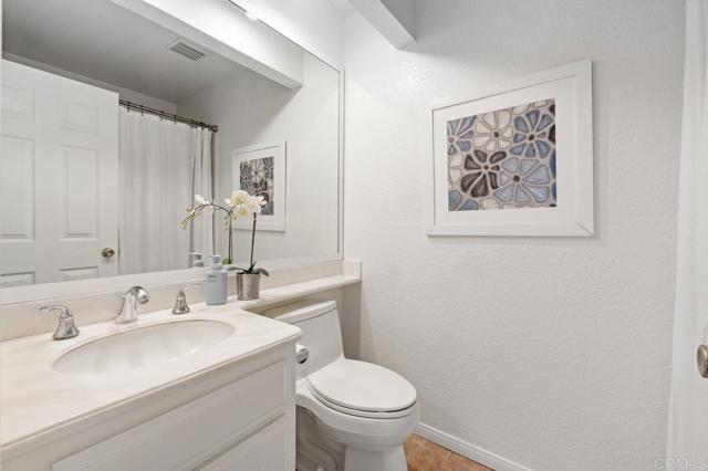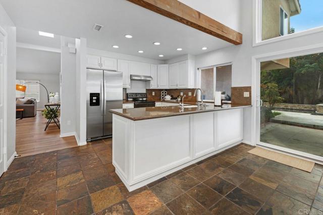 Boasting an expansive 2,492 sq. ft., this 5-bedroom, 3-bath expanded home has space for a variety of living options! Originally a single-story home, the primary suite and two more bedrooms are on the first level and two huge bedrooms and a full bath were added upstairs. The first level was also expanded to increase living space. Approximately 983 sq. ft. was added with permits. The flexible floor plan is ideal for multi-generational living, working from home, blended families, rental potential or those who simply value space! Enter into a huge great room with vaulted ceilings, and natural light, creating an ideal gathering space. The kitchen has granite countertops, counter seating, walk-in pantry, and a large eat-in area or optional family room. Escape to your own backyard oasis featuring a newer (2020) saltwater pool and spa perfect for hosting a summer BBQ, pool party, or soaking under the stars. Other features include a water filtration system, solar for both the pool and house (PPA), newer windows throughout and luxury vinyl flooring. The Village Creek community offers exclusive access to a pool, tennis courts, and playground. Conveniently located between Flora Vista Elementary and Diegueno Middle Schools, and within the prestigious Encinitas Union High School District. Just a few miles from world-class beaches, vibrant downtown Encinitas, the 5 Freeway, and the North County Coaster station for easy commuting.