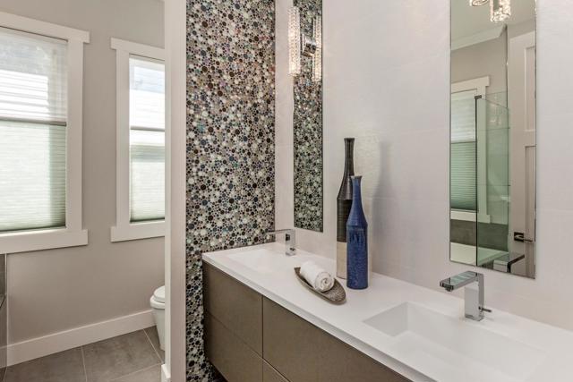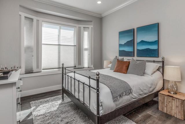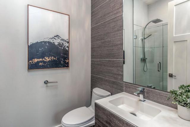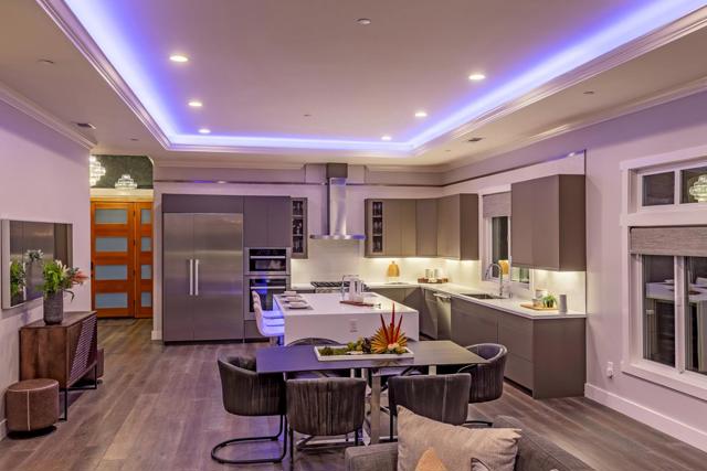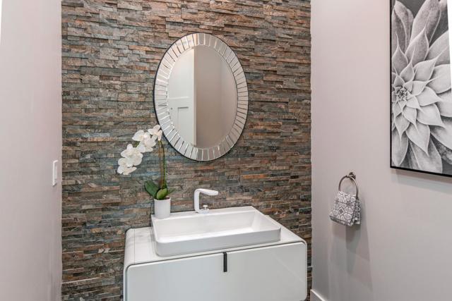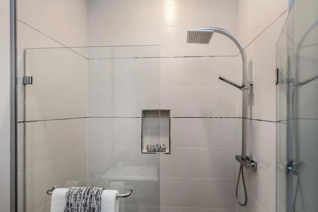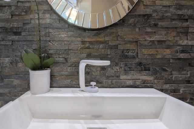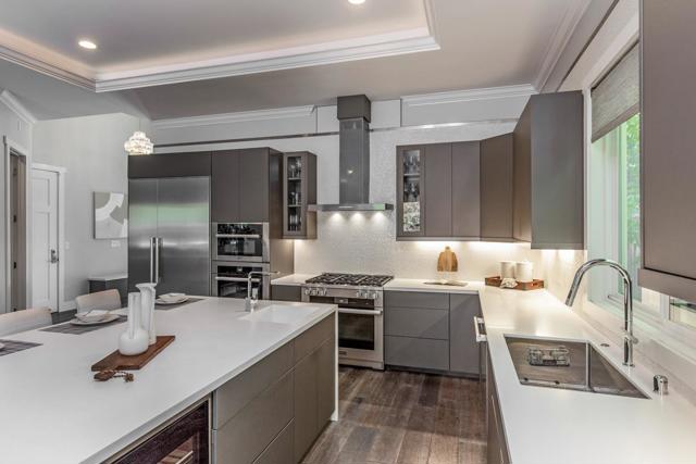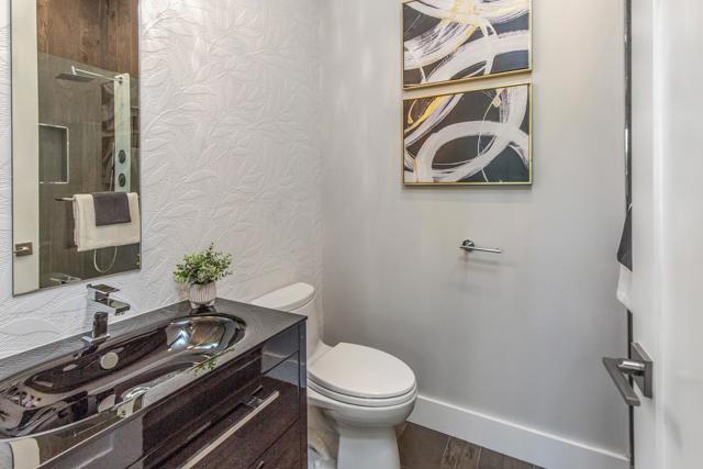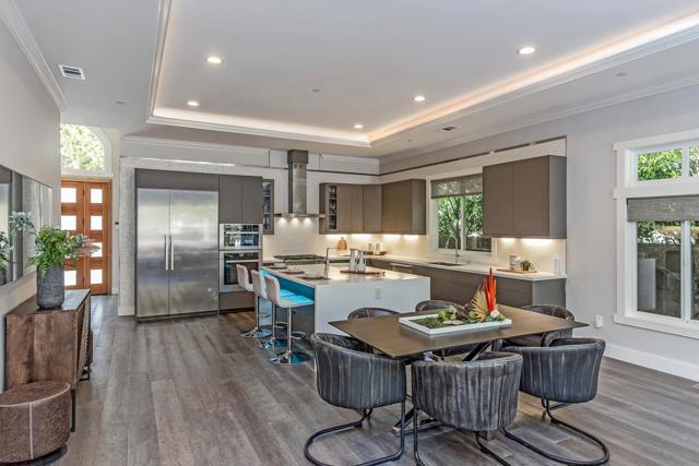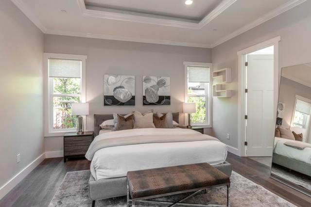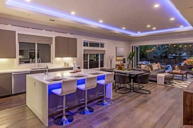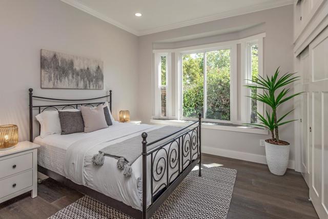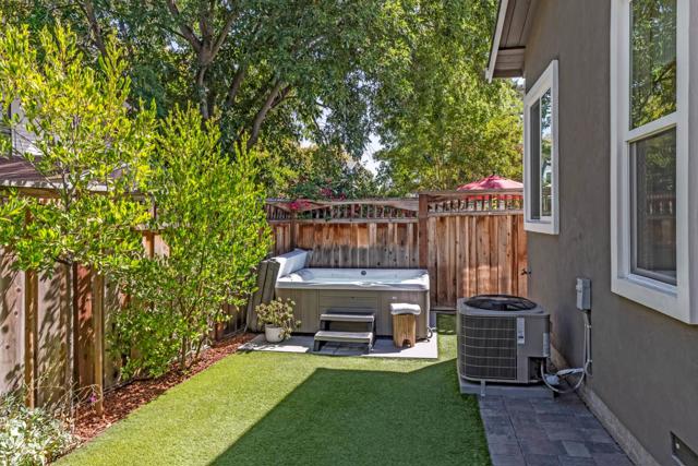 A stunning designer home where each Porcelanosa tile and finish has been carefully selected, open-concept living spaces sit beneath 10-foot ceilings, and Panoramic sliding doors create a seamless connection to the outdoors. In every room you will find cohesive cabinetry, gorgeous deep hued engineered wood floors, and custom features that combine to create a home that feels truly luxurious and thoughtfully curated all the way through. The fabulous great room has tall tray ceilings with remote-controlled uplighting and encompasses the kitchen, dining room and airy living room. The chefs kitchen stuns with an oversized waterfall island topped in specialty Krion countertops, abundant modern cabinetry, and a full Miele appliance suite. The living room enjoys a striking linear fireplace with a to-the-ceiling tile surround and a full wall of sliding doors to the outdoor entertaining space. A front-facing bedroom can be used as a quiet home office, two bedroom suites have gorgeous en suite baths, and the primary suite has wide sliding glass doors to the yard, a customized walk-in closet, and a modern spa bath. The private, low maintenance yard has a large patio, synthetic lawn, and a relaxing hot tub. Luxury living, perfectly placed minutes from Google and downtown Mountain View!