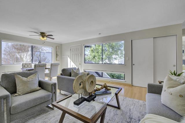 Nestled in the desirable The Gardens gated community, this beautifully updated top-level 2-bedroom, 1 bath condo offers the perfect blend of charm, comfort, and Peninsula convenience. Tucked away at the back of the complex, the home enjoys a peaceful and private setting. The inviting open living area features a cozy fireplace and luxury laminate flooring throughout, seamlessly connecting to the dining area ideal for both everyday living and entertaining. The updated kitchen offers ample counter space, freshly painted cabinetry, and new stainless steel appliances, including a refrigerator, stove, and hood.The home includes two spacious bedrooms, an updated bathroom, and a freshly painted interior. A deeded one-car covered garage space, plus an additional unassigned parking space, completes this move-in-ready residence. Resort-style amenities including an outdoor pool, indoor pool, and a fully equipped fitness center. Ideally located near top-rated schools, vibrant San Mateo amenities, Hillsdale Shopping Center, Silicon Valley tech hubs, and with convenient access to Highways 92, 101, and 280, this home offers peaceful living with exceptional accessibility.