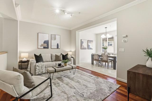 Highly desirable townhome in the gated Mission Gardens community! This move-in ready home features new carpet, hardwood flooring, and fresh interior paint throughout, offering a bright and modern feel. The formal living room showcases soaring ceilings and patio views, while the open mid-level layout connects the family room and gourmet kitchen with granite countertops, abundant cabinetry, included appliances, and a sunny dining area. Upstairs offers three bedrooms including a spacious primary suite with walk-in closet and private bath, plus a full guest bath and convenient indoor laundry with a washer and dryer. Residents enjoy use of the sparkling community pool, spa & playground. Prime Silicon Valley location near Rivermark shopping, dining, parks, Guadalupe River Trail, Levi Stadium, and major tech campuses with easy commute access.