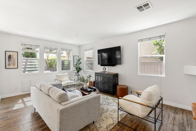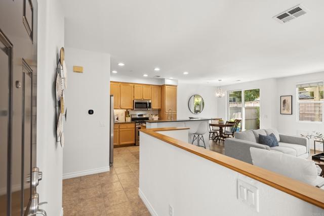 Welcome home to this light-filled, move-in-ready, rare two level, 3-bedroom, plus office/Den, 2.5-bath town home in Campana, one of San Marcos’ most sought-after gated communities. This thoughtfully updated residence features fresh interior paint, new countertops and an open-concept floor plan ideal for both everyday living and entertaining. A versatile first-floor flex space offers the perfect option for a home office, den, or creative studio, while modern upgrades such as a brand-new air conditioner, convenient half bath, laundry, custom Alumawood trellis and private two-car garage enhance both comfort and functionality. Upstairs, the spacious primary suite impresses with vaulted ceilings, abundant natural light, an en suite bathroom and a generous walk-in closet. Two additional bedrooms and a dedicated guest bath complete the upper level, offering plenty of room for family, guests, or roommates. Step outside to your private backyard patio protected by the custom Alumawood trellis, perfect for unwinding, hosting barbecues, or enjoying weekend gatherings. Residents of Campana also enjoy access to a sparkling pool and spa, BBQ area, playground, scenic hiking trails, and ample 24-hour guest parking. The location is unbeatable, just minutes from Cal State San Marcos, local restaurants, breweries, grocery stores, hospitals, and easy freeway access. With low HOA fees and Mello-Roos, this home seamlessly blends comfort, style and convenience. Whether you’re seeking a primary residence, a savvy investment, or student housing, this property offers exceptional value and a lifestyle that balances ease with opportunity.