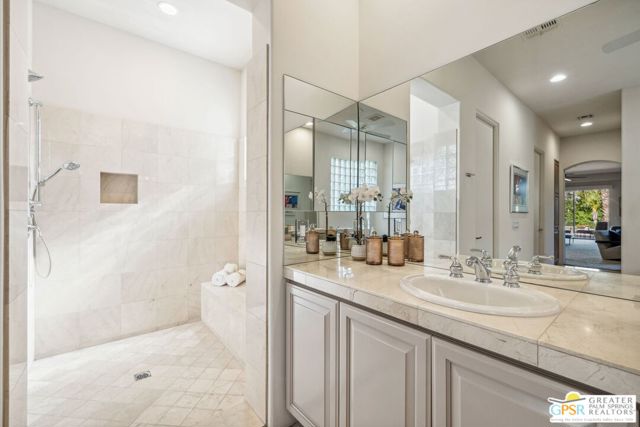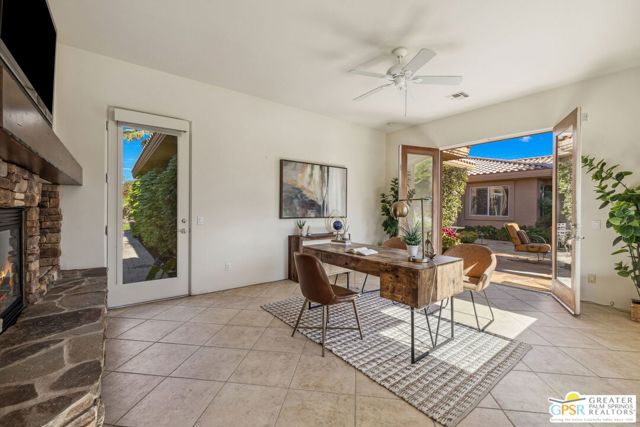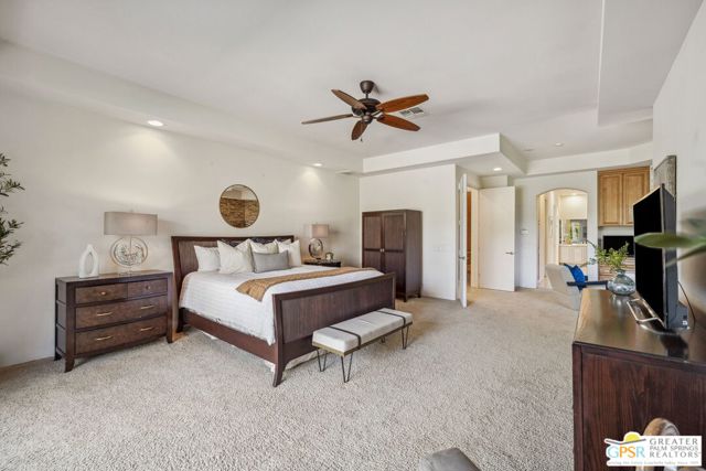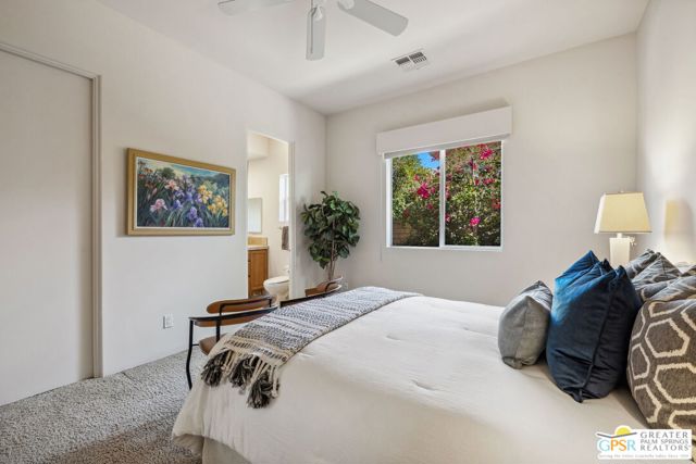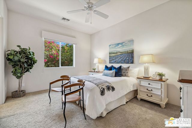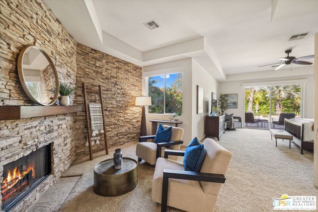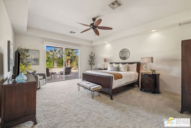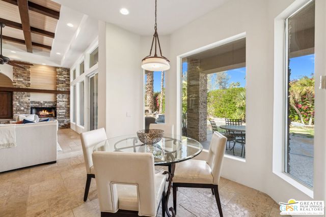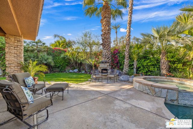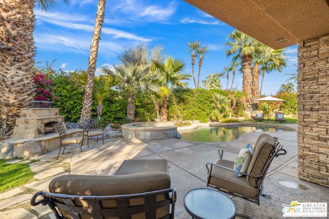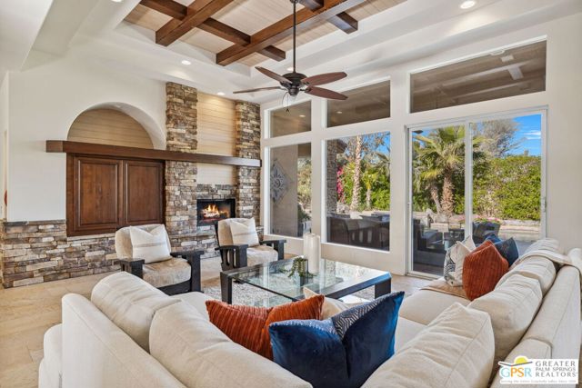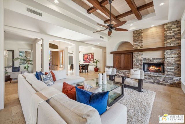 Luxury Lease Available March 2026. **Annual tenant preferred; shorter lease terms may be considered. The property can be offered unfurnished for a 12 - 24+ month lease. Rates vary depending on Month and Duration of Lease.** Experience the ultimate desert retreat behind the gates of Ivy League Estates in Rancho Mirage, ideally located just off Bob Hope Drive. This expansive 5-bedroom, 5.5-bath residence spans over 4,200 square feet and includes a private detached casita, offering exceptional space, privacy, and sophistication. The interior showcases soaring 16-foot beamed and vaulted ceilings designed by Guy Drier, smooth-finish walls, and expansive travertine flooring throughout. The gourmet kitchen is designed for both everyday living and entertaining, featuring an oversized island, walk-in pantry, breakfast nook, and seamless indoor-outdoor flow to the covered patio. Outdoors, enjoy a resort-style setting with a saltwater pool and spa, outdoor kitchen, and multiple entertaining areas. The Primary Suite occupies its own private wing and opens directly to the pool. It features a fireplace, sitting area, oversized walk-in closets, and a spa-inspired ensuite bath. Three additional junior ensuite bedrooms are thoughtfully positioned on the opposite side of the home, offering privacy for guests or family members. The detached casita includes a fireplace, kitchenette, full bath, and private patio, making it ideal for guests, extended family, or a private office. Situated on one of the largest lots in the community, the property is surrounded by beautifully curated landscaping and hardscape design, custom paver walkways, ambient lighting, and a serene courtyard with a fire pit and mountain views. The three-car garage features epoxy flooring and custom storage. Located just minutes from Eisenhower Medical Center, El Paseo, world-class golf courses, luxury resorts, shopping, dining, and entertainment, this home offers an exceptional blend of privacy, convenience, and resort-style living. **Rates vary depending on Month and Duration of Lease. **