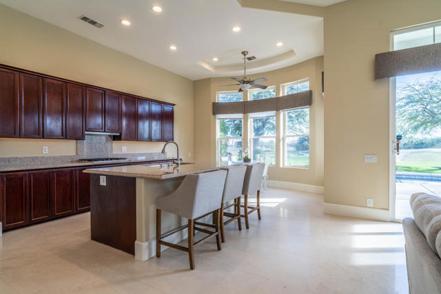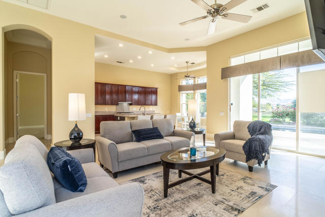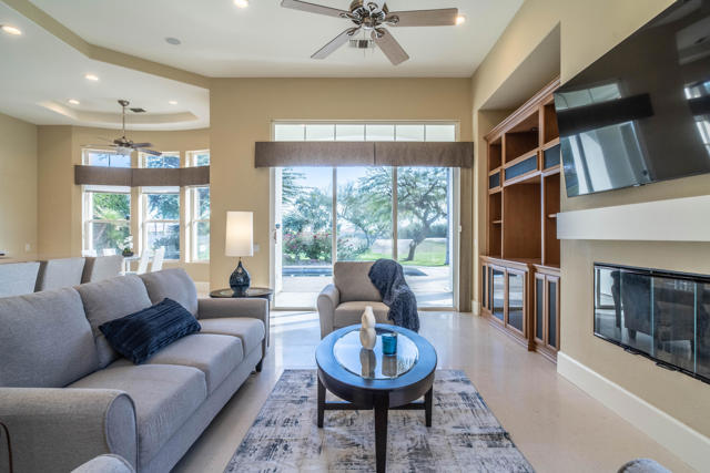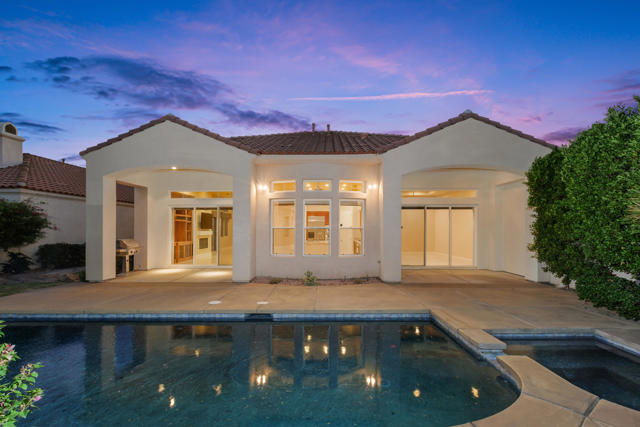 Experience stunning golf course views and the ultimate indoor-outdoor lifestyle in this spacious open-concept home. Featuring three bedrooms and two and one-half bathrooms, this retreat is designed for comfort and relaxation. Enjoy sunny days lounging by your private pool or unwind under the covered patio while taking in the beautiful desert scenery. Whether you're entertaining guests or simply enjoying a peaceful evening at home, this property offers the ideal blend of elegance and leisure--ready for you to move in and start enjoying right away.