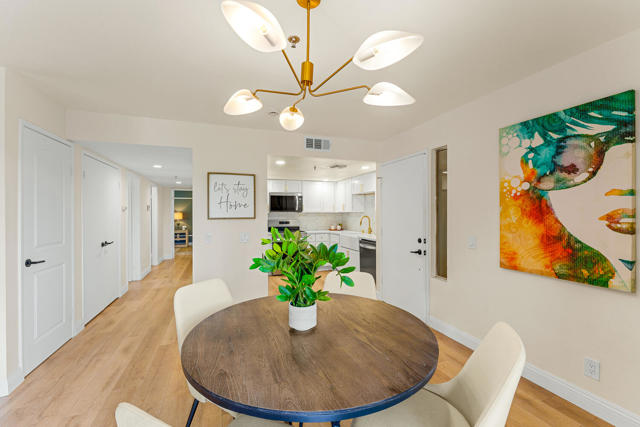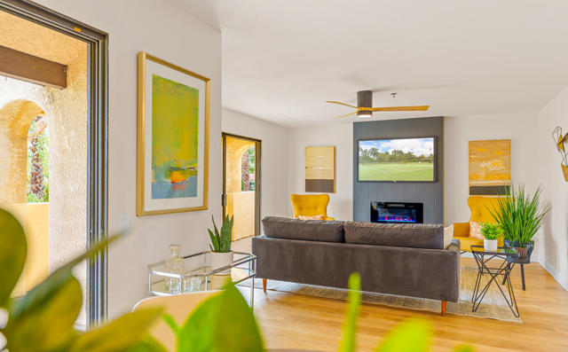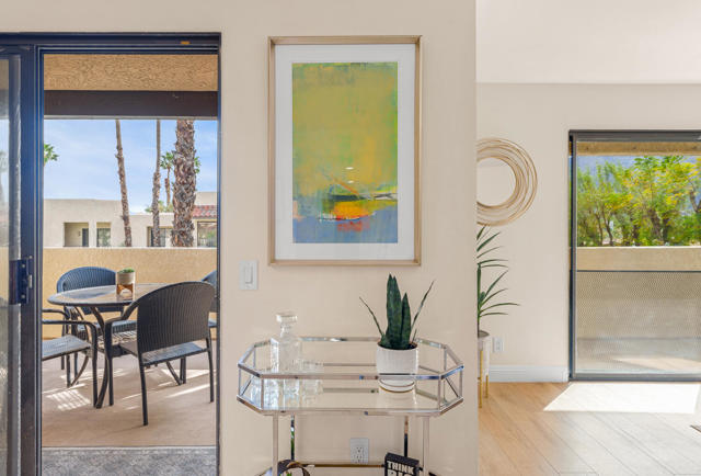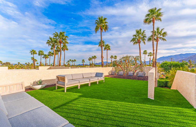 Experience the ultimate Palm Springs lifestyle in this stunningly remodeled 2-bedroom, 2-bath condo--offered FULLY FURNISHED! Thoughtfully updated with a designer's touch, this home features an elegant electric tiled fireplace, destined to be the centerpiece of your gatherings. Step outside to your PRIVATE, ENORMOUS rooftop deck, where breathtaking 360-degree views with spectacular mountain views set the perfect backdrop for relaxation or entertaining. Each bedroom boasts its own balcony with a storage closet, while inside, you'll find abundant closet space, an oversized walk-in master closet, including a convenient laundry closet with a stackable washer/dryer. The beautifully NEW updated kitchen showcases NEW stainless steel appliances, New kitchen cabinets including a refrigerator. An enclosed garage provides secure parking. Located in the sought-after Camino Del Sol community, enjoy access to pools, spas, and tennis courts--all with low HOA fees on FEE land (NO land lease!) Plus, with quick access to downtown Palm Springs, this is the perfect getaway or full-time residence. Don't miss this incredible opportunity--schedule your showing today!