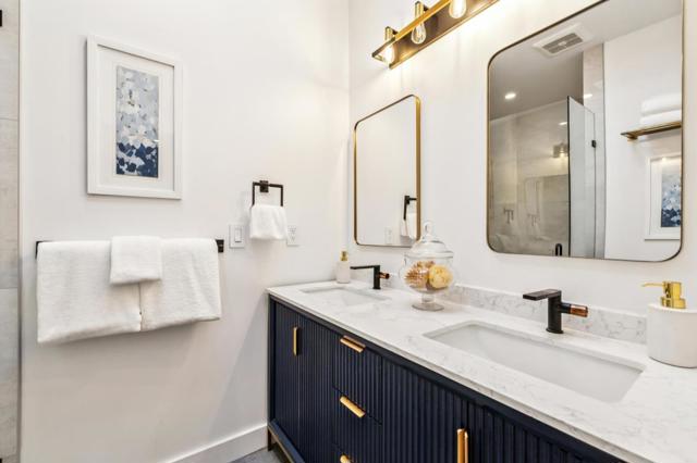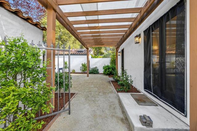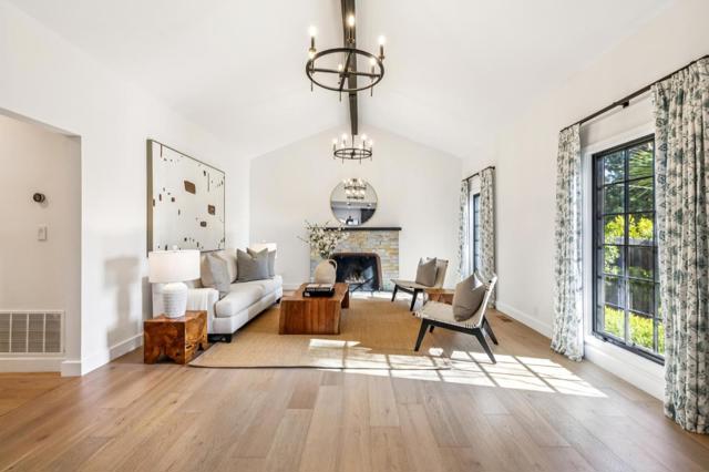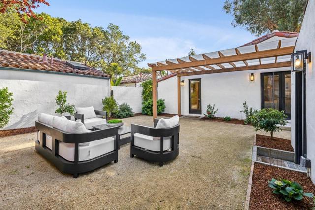Privately positioned on a cul-de-sac frontage road, this home is set back from the main thoroughfare of Sand Hill Road for a more secluded setting. Showcasing classic Spanish architecture, circa 1929, the interiors have been completely renovated and thoughtfully reimagined for modern living while preserving the character that defines this enduring style. White oak floors and curated lighting create warmth, the living room centers on a focal point fireplace, and the dining area is highlighted by a striking bubble glass chandelier. The open, flowing layout is anchored by a designer kitchen with high-end appliances. The primary suite opens to the rear grounds and features a luxurious bath, two additional bedrooms share a bath, and a powder room serves guests. The detached garage is fully finished offering bonus living space ideal for an office or fitness center. Crushed stone patios and shaded lounge areas extend the living spaces outdoors, completing a home that honors its heritage while delivering comfort and livability moments from Stanford University and within the highly desirable Las Lomitas School District.
